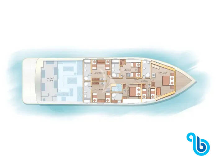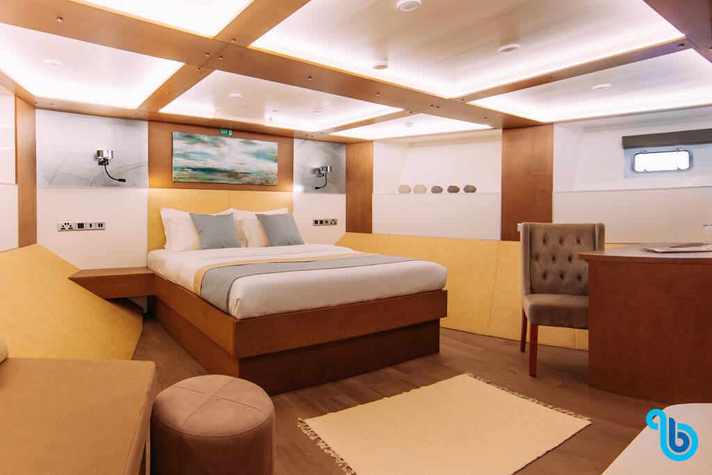 Skipper nie jest wliczony w cenę łodzi. Możliwe będzie dodanie skippera podczas procedury potwierdzania: koszt wynosi zwykle od 180 do 250 euro za dzień; skipper wymaga dedykowanej kabiny. Po sprawdzeniu u operatora BeBlue będzie można poprosić o to, aby skipper spał w jadalni (centralny salon).