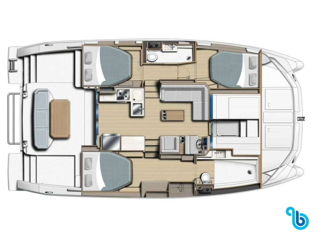 Skipper nie jest wliczony w cenę łodzi. Możliwe będzie dodanie skippera podczas procedury potwierdzania: koszt wynosi zwykle od 180 do 250 euro za dzień; skipper wymaga dedykowanej kabiny. Po sprawdzeniu u operatora BeBlue będzie można poprosić o to, aby skipper spał w jadalni (centralny salon).