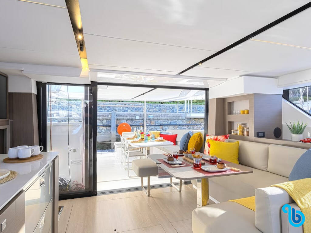 Moorings 4600 (Katamaran), został zwodowany w 2026 i ma bazę na Brytyjskie Wyspy Dziewicze w Road Town, The Moorings . Kadłub wyposażony jest w 4 kabiny I 4 i komfortowo pomieści 10 osoby.