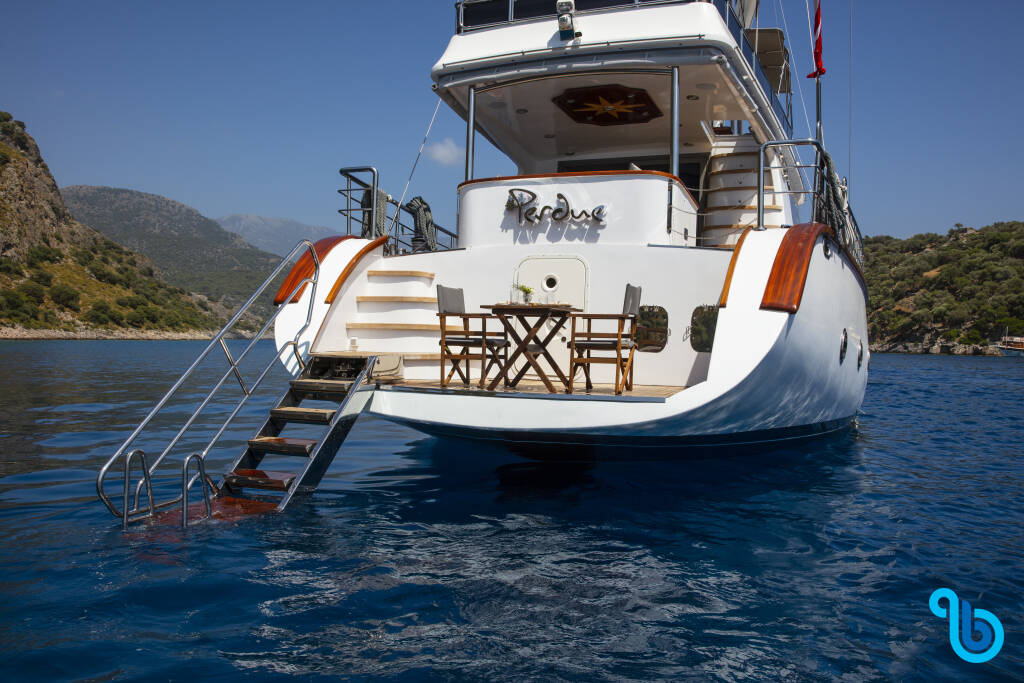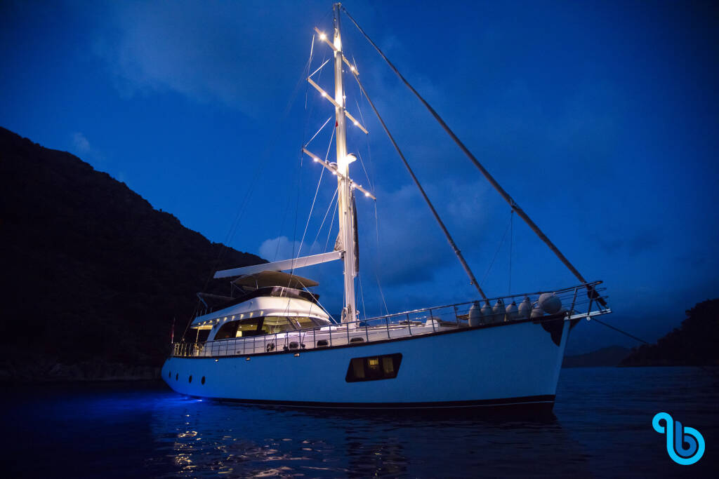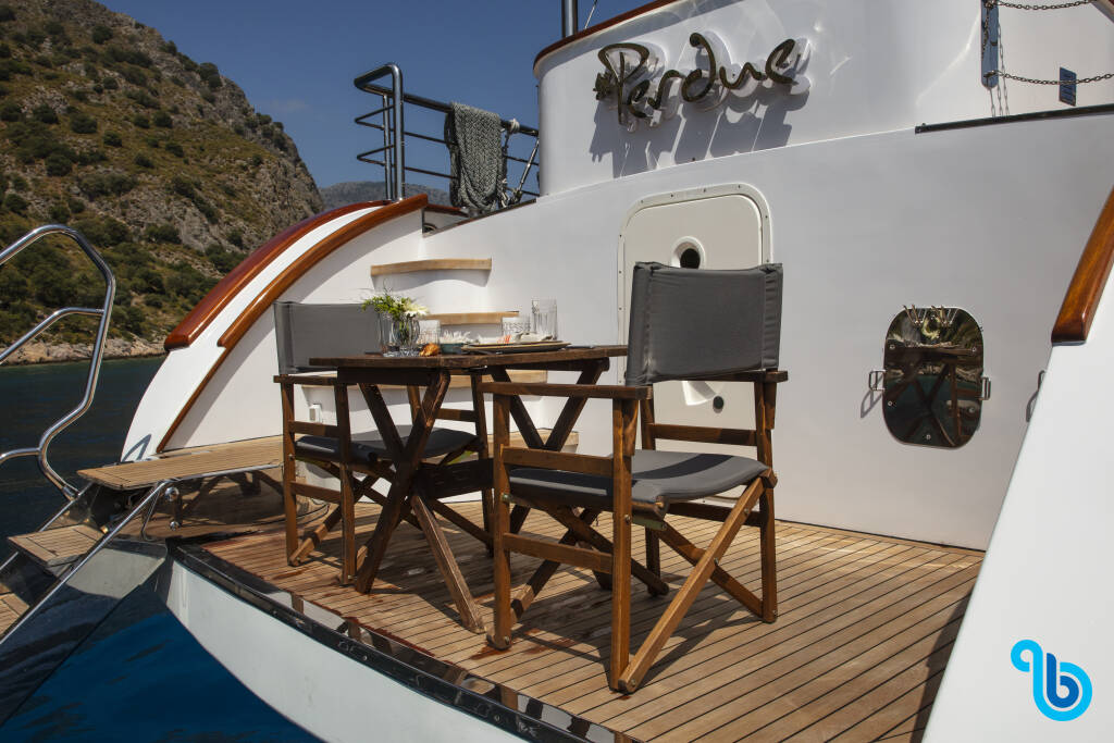 Jacht Motor Sailer Perdue (Gulet), został zwodowany w 2018 i stacjonuje w Turcja Fethiye / Gocek w mieście Fethiye port-Fethiye. Kadłub jest skonfigurowany z 3 kabinami i 3 wc i jest zarejestrowany do komfortowego przyjęcia 6 osób.
