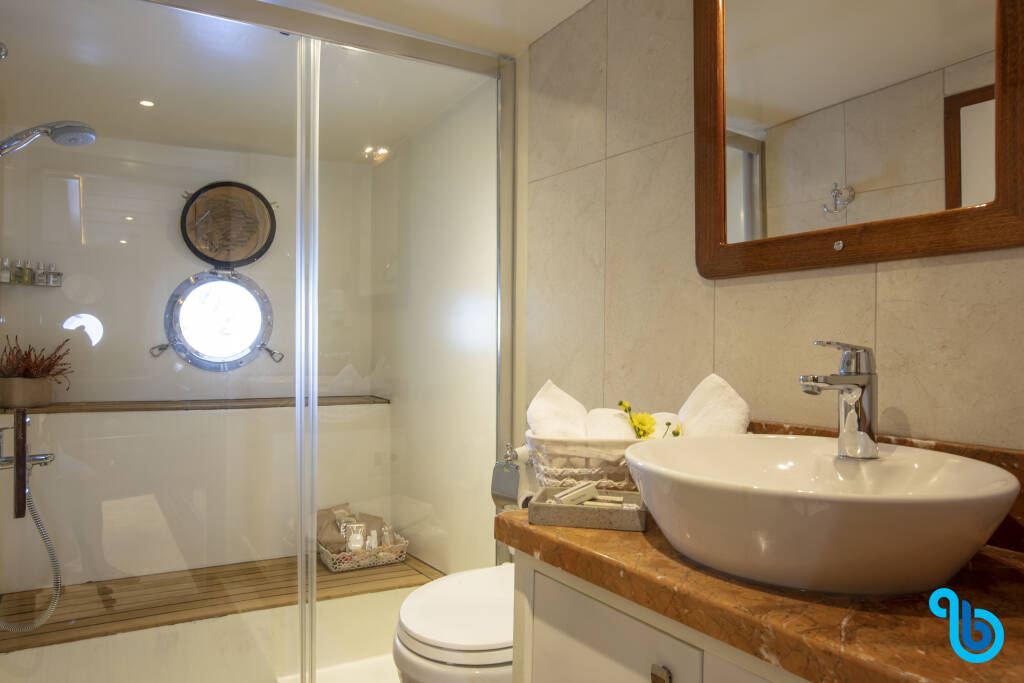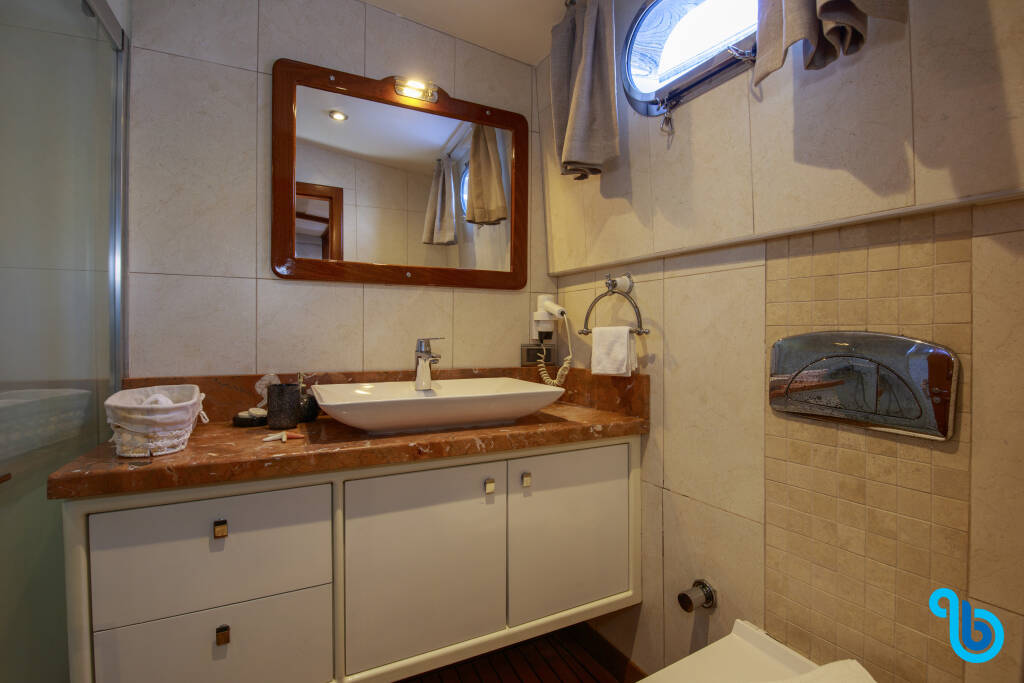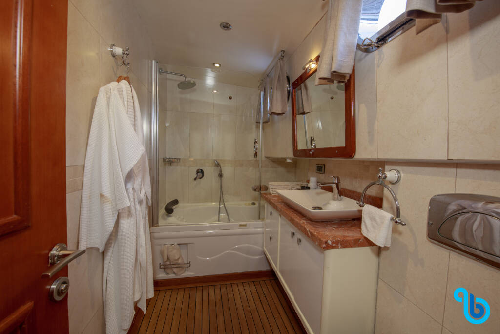 Skipper nie jest wliczony w cenę łodzi. Możliwe będzie dodanie skippera podczas procedury potwierdzania: koszt wynosi zwykle od 180 do 250 euro za dzień; skipper wymaga dedykowanej kabiny. Po sprawdzeniu u operatora BeBlue będzie można poprosić o to, aby skipper spał w jadalni (centralny salon).