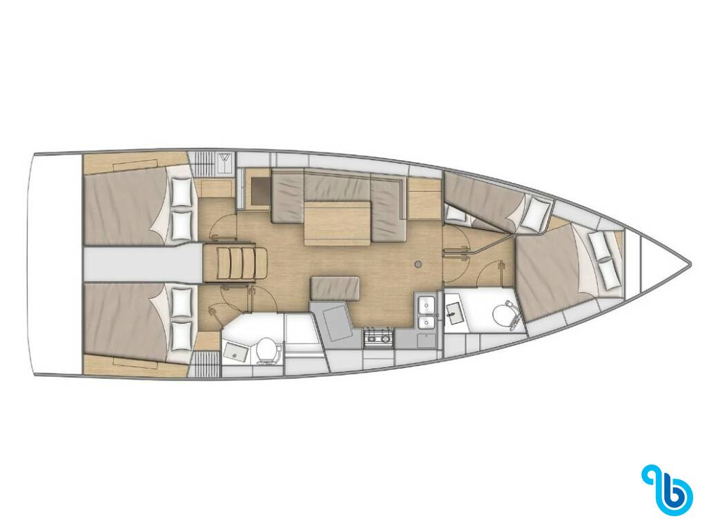 Skipper nie jest wliczony w cenę łodzi. Możliwe będzie dodanie skippera podczas procedury potwierdzania: koszt wynosi zwykle od 180 do 250 euro za dzień; skipper wymaga dedykowanej kabiny. Po sprawdzeniu u operatora BeBlue będzie można poprosić o to, aby skipper spał w jadalni (centralny salon).