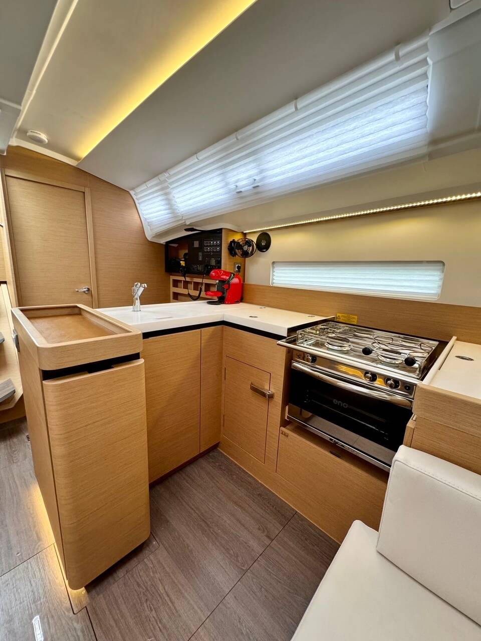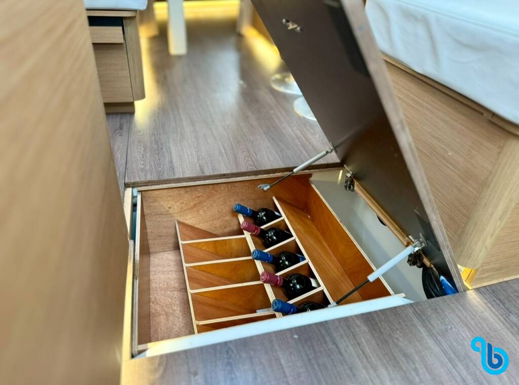 Skipper nie jest wliczony w cenę łodzi. Możliwe będzie dodanie skippera podczas procedury potwierdzania: koszt wynosi zwykle od 180 do 250 euro za dzień; skipper wymaga dedykowanej kabiny. Po sprawdzeniu u operatora BeBlue będzie można poprosić o to, aby skipper spał w jadalni (centralny salon).