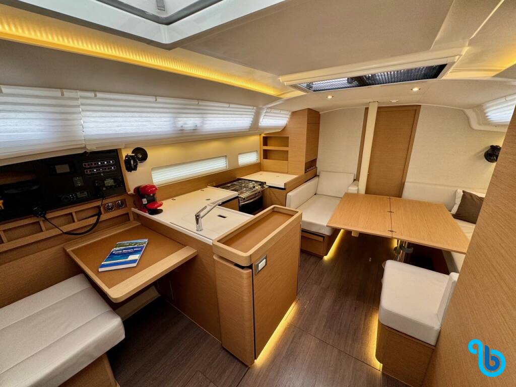 Jacht Sun Odyssey 410 LUCIA (Jacht żaglowy), został zwodowany w 2023 i stacjonuje w South Peloponnese w mieście Pylos, Pylos Marina. Kadłub jest skonfigurowany z 3 kabinami i 2 wc i jest zarejestrowany do komfortowego przyjęcia 6 + 2 osób.