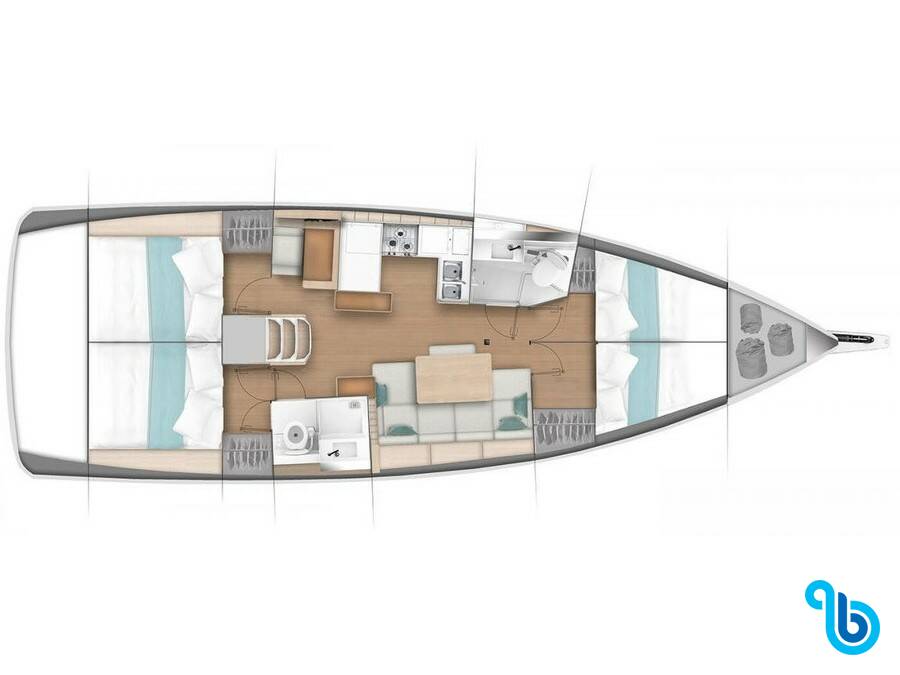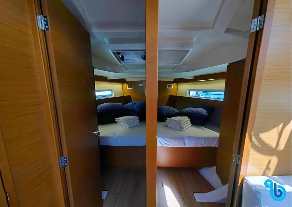 Skipper nie jest wliczony w cenę łodzi. Możliwe będzie dodanie skippera podczas procedury potwierdzania: koszt wynosi zwykle od 180 do 250 euro za dzień; skipper wymaga dedykowanej kabiny. Po sprawdzeniu u operatora BeBlue będzie można poprosić o to, aby skipper spał w jadalni (centralny salon).