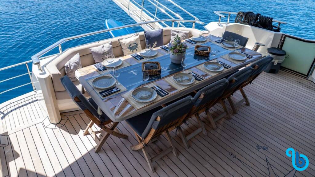 Skipper nie jest wliczony w cenę łodzi. Możliwe będzie dodanie skippera podczas procedury potwierdzania: koszt wynosi zwykle od 180 do 250 euro za dzień; skipper wymaga dedykowanej kabiny. Po sprawdzeniu u operatora BeBlue będzie można poprosić o to, aby skipper spał w jadalni (centralny salon).