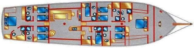 Accommodation: A Luxury large 39 meter Schooner Gulet for 12 guest equipped with 6 cabins (2 vip master, 4 twin), each with private bathroom, cubical shower and air conditioning.