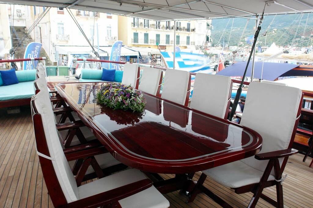 APA: The yacht applies a half board policy for 80 euros/person/ day. This includes full BF, snacks, lunch and one dinner/ week, all drinks including local wines and beers. Children under 12 years are charged -50%. Infants under 12 months are free of charge. Menus at disposal upon request. Totally flexible to adjust according to preferences, special diets, allergies and medical conditions.