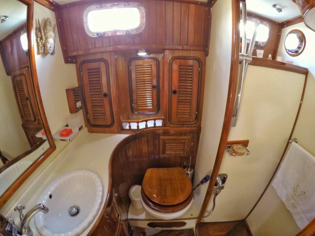 Abundance of solid teak, wonderful furnishings from the Orient, 1 King and 1 queensize a/c cabins w/ensuite head & shower, separate crew qtrs.