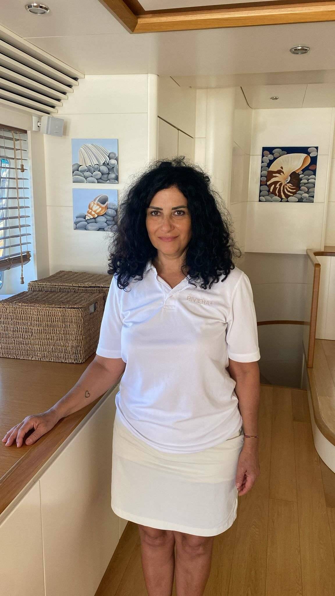 Stewardess: Marisa Orlando, Italian, 50 y.o.