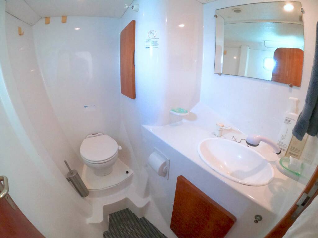 • 2 Large Double Aft cabins, each with en-suite with racks storage and wardrobe, Electric macerator heads (New 2015)