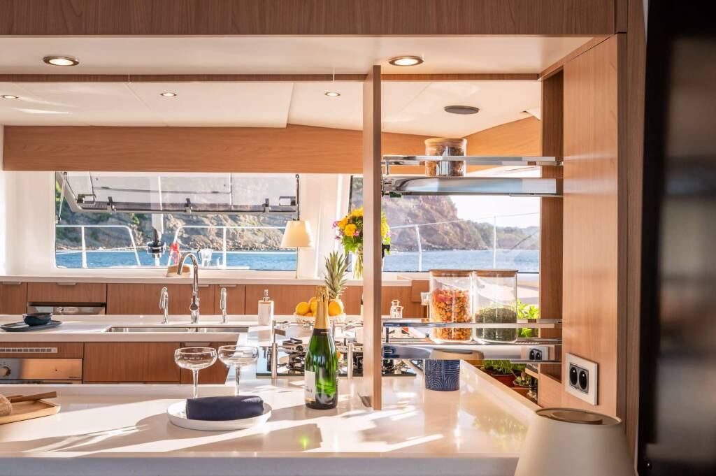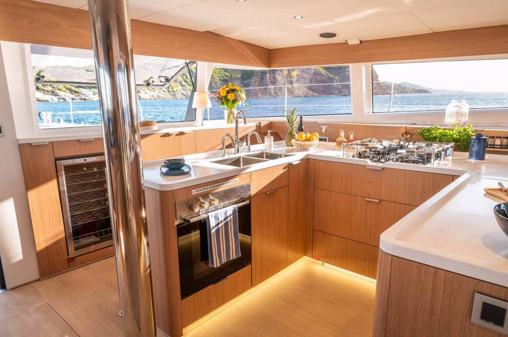 Luksusowy katamaran LOCATION 5.8, zbudowany w 2027 stacjonuje w Bahamas. Posiada 5 kabin, może pomieścić 9 osób.