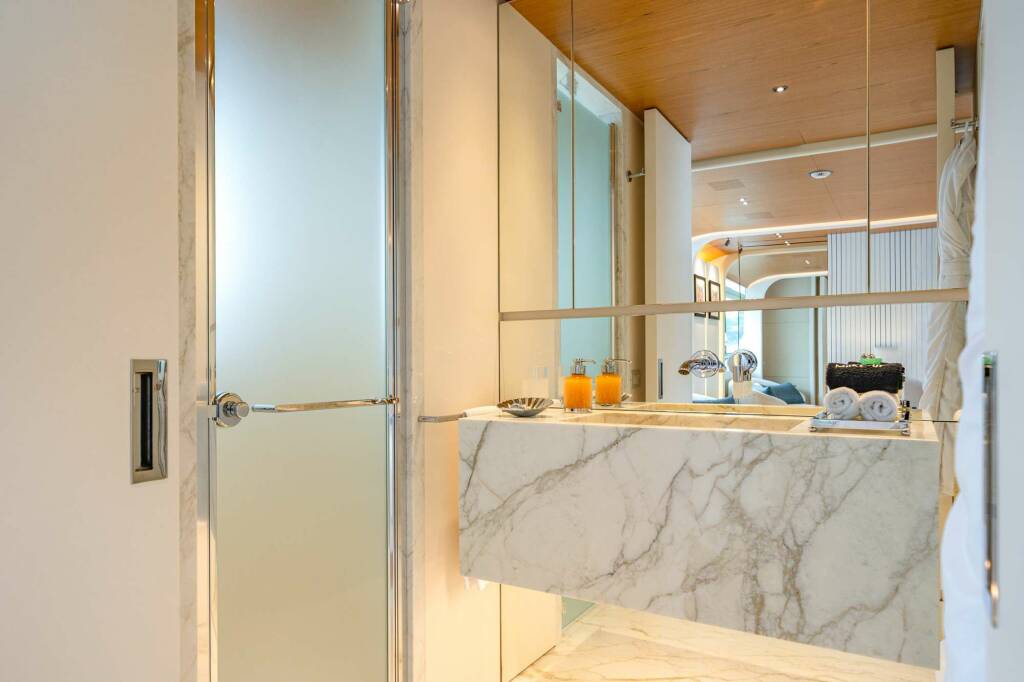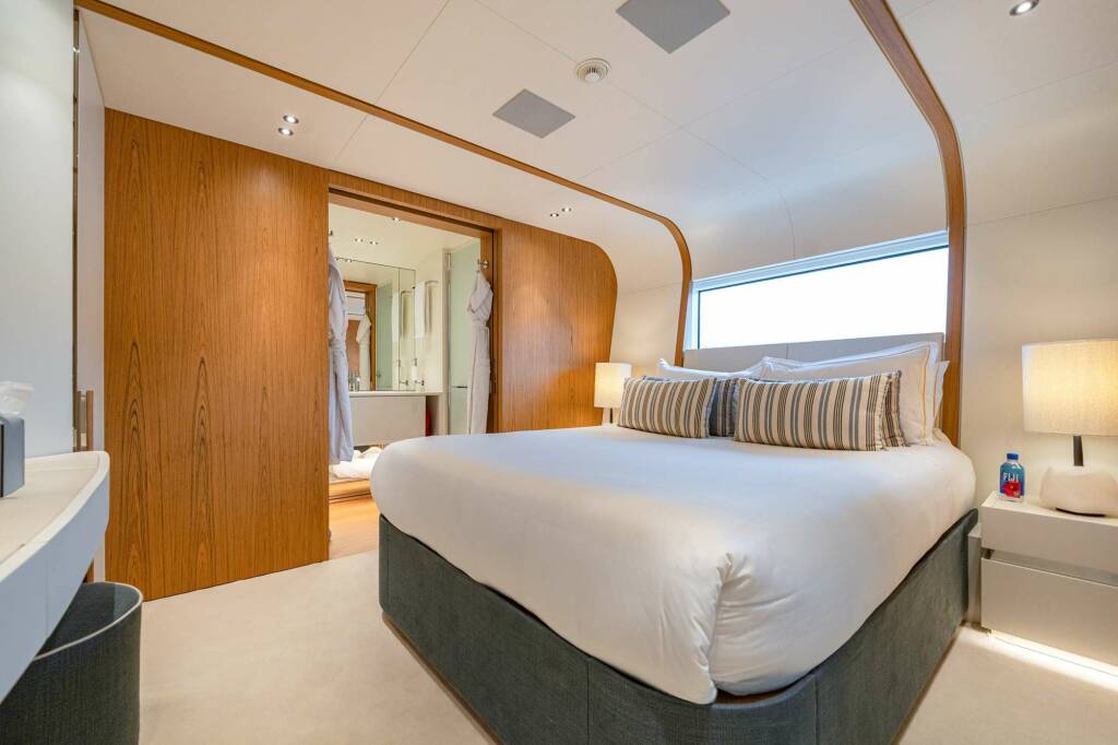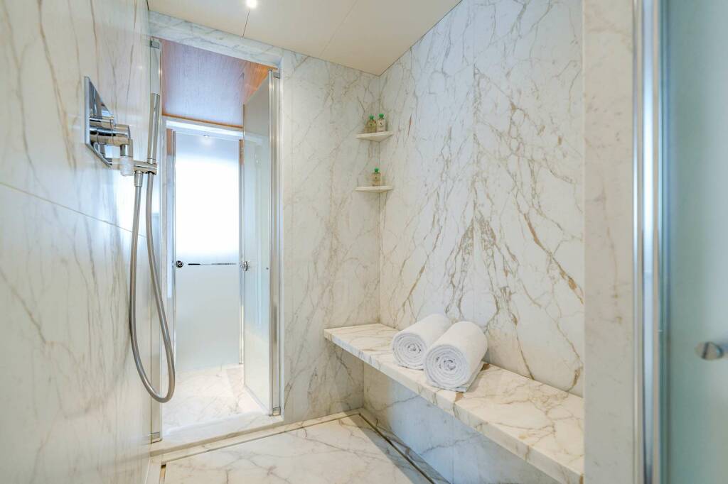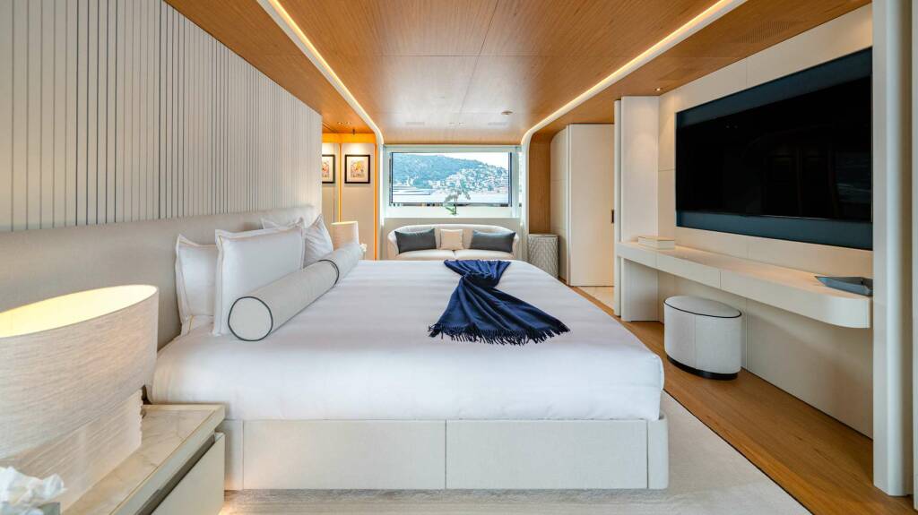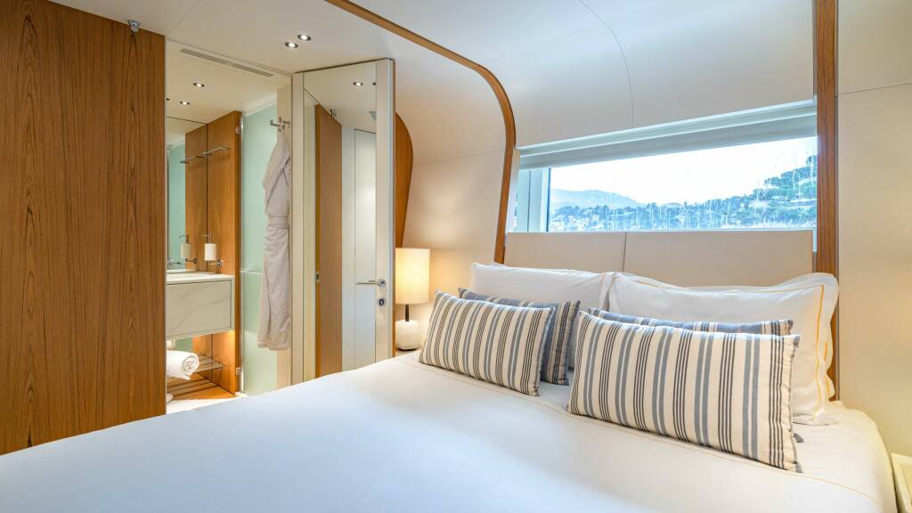 Accommodation: ALLURIA offers luxurious accommodation for up to 10 guests across 5 beautifully appointed suites. The layout includes a full-beam master suite located on the main deck, two VIP cabins, one convertible cabin that can be configured as a double or twin, and one dedicated twin cabin.