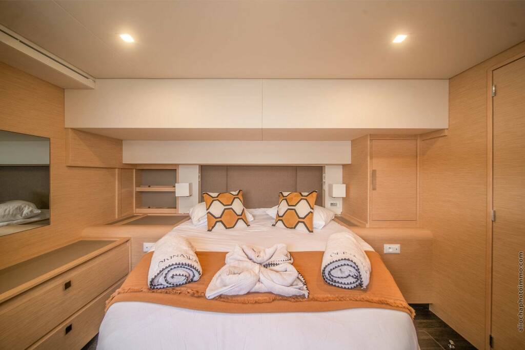 Luksusowy katamaran OKINAWA, zbudowany w 2024 stacjonuje w W. Med -Naples/Sicily, W. Med -Riviera/Cors/Sard.. Posiada 5 kabin, może pomieścić 10 osób.