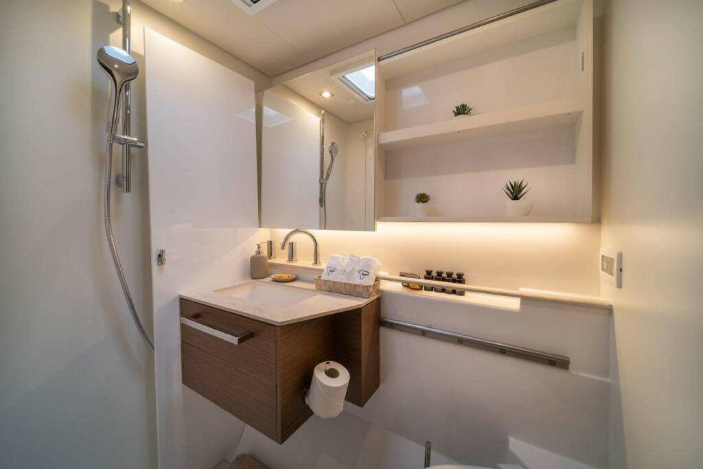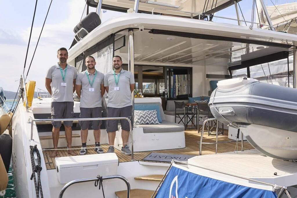 Luksusowy katamaran HYDRUS, zbudowany w 2023 stacjonuje w Greece. Posiada 5 kabin, może pomieścić 10 osób.