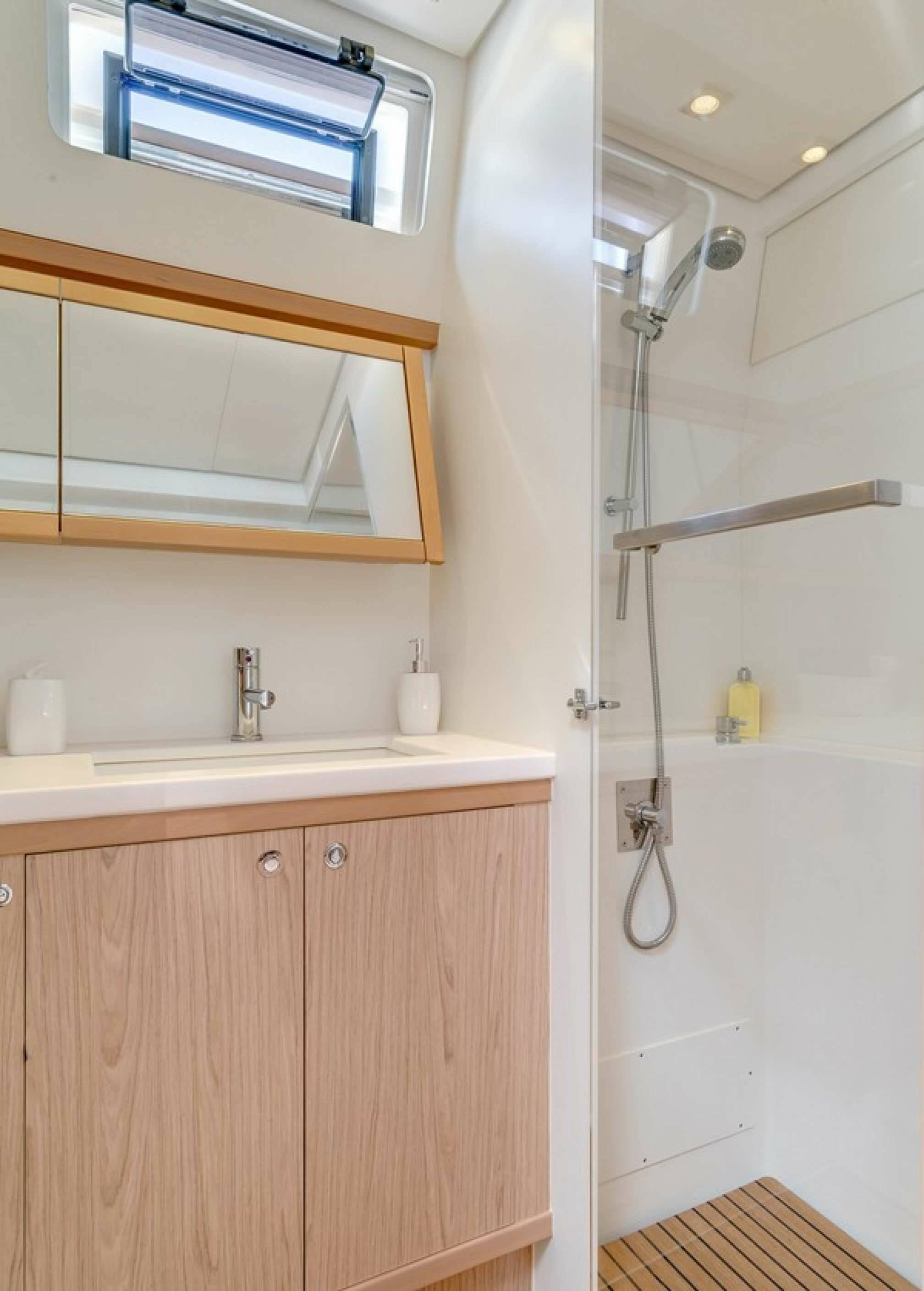 Air conditioning, generator, watermaker, teak wood finishes, electric toilets, TV entertainment system, sunbathing solarium, inverter, and professional-grade electronics to ensure comfort and safety throughout your voyage.