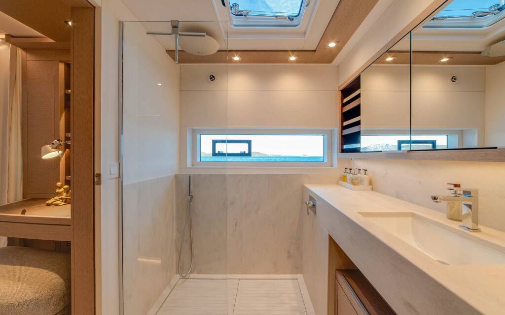 Luksusowy katamaran ZENIT, zbudowany w 2024 stacjonuje w W. Med -Naples/Sicily, Greece. Posiada 4 kabin, może pomieścić 8 osób.