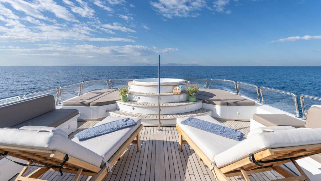 Large new bar and jacuzzi on sun deck and extended x 3mt swimming platform.