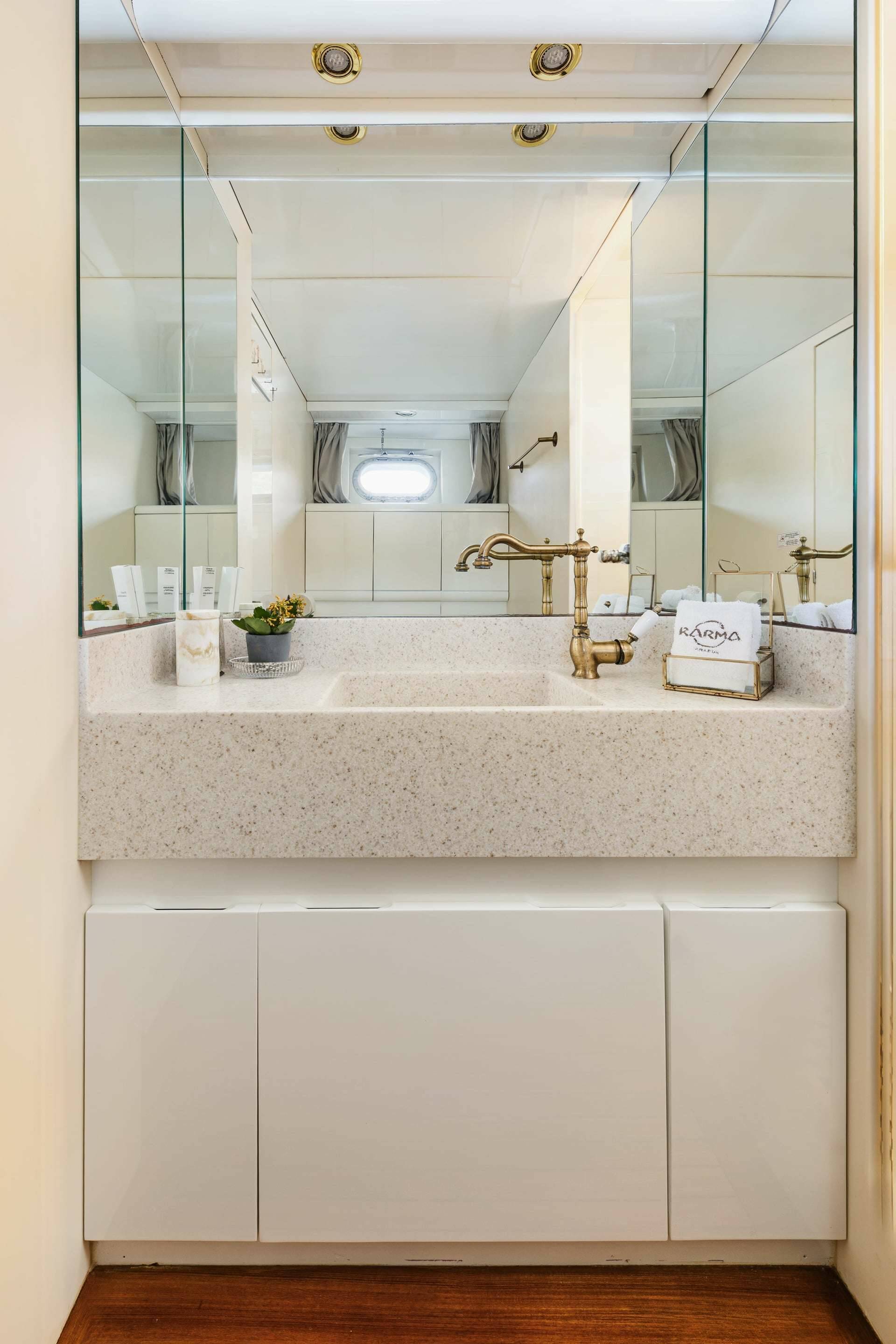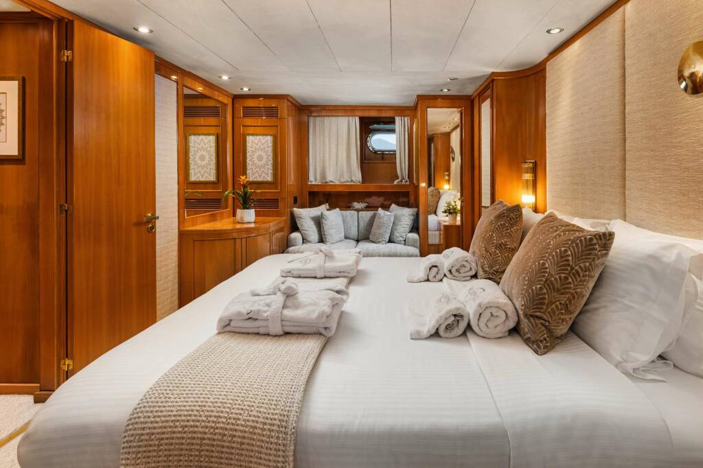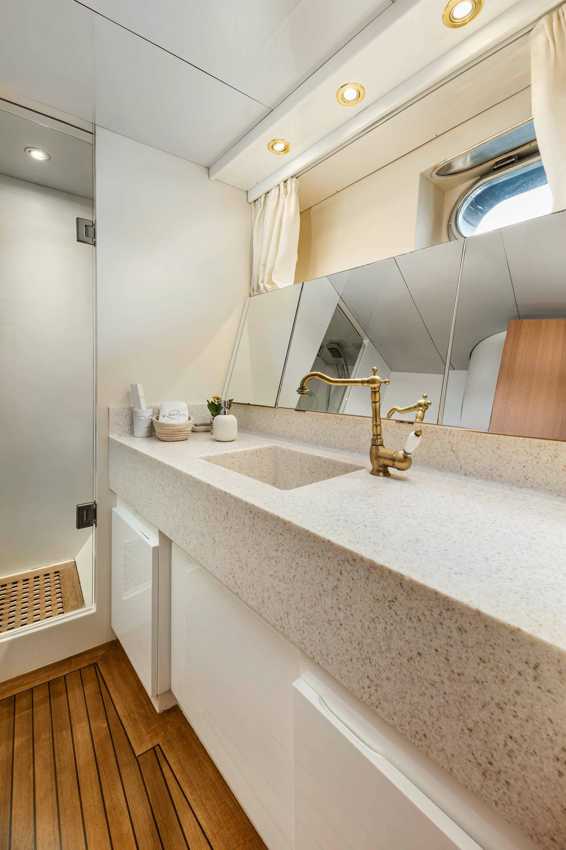 Accommodation: KARMA offers has 4 cabins below deck with ensuite bathrooms + 1 convertible lounge on main deck with ensuite WC