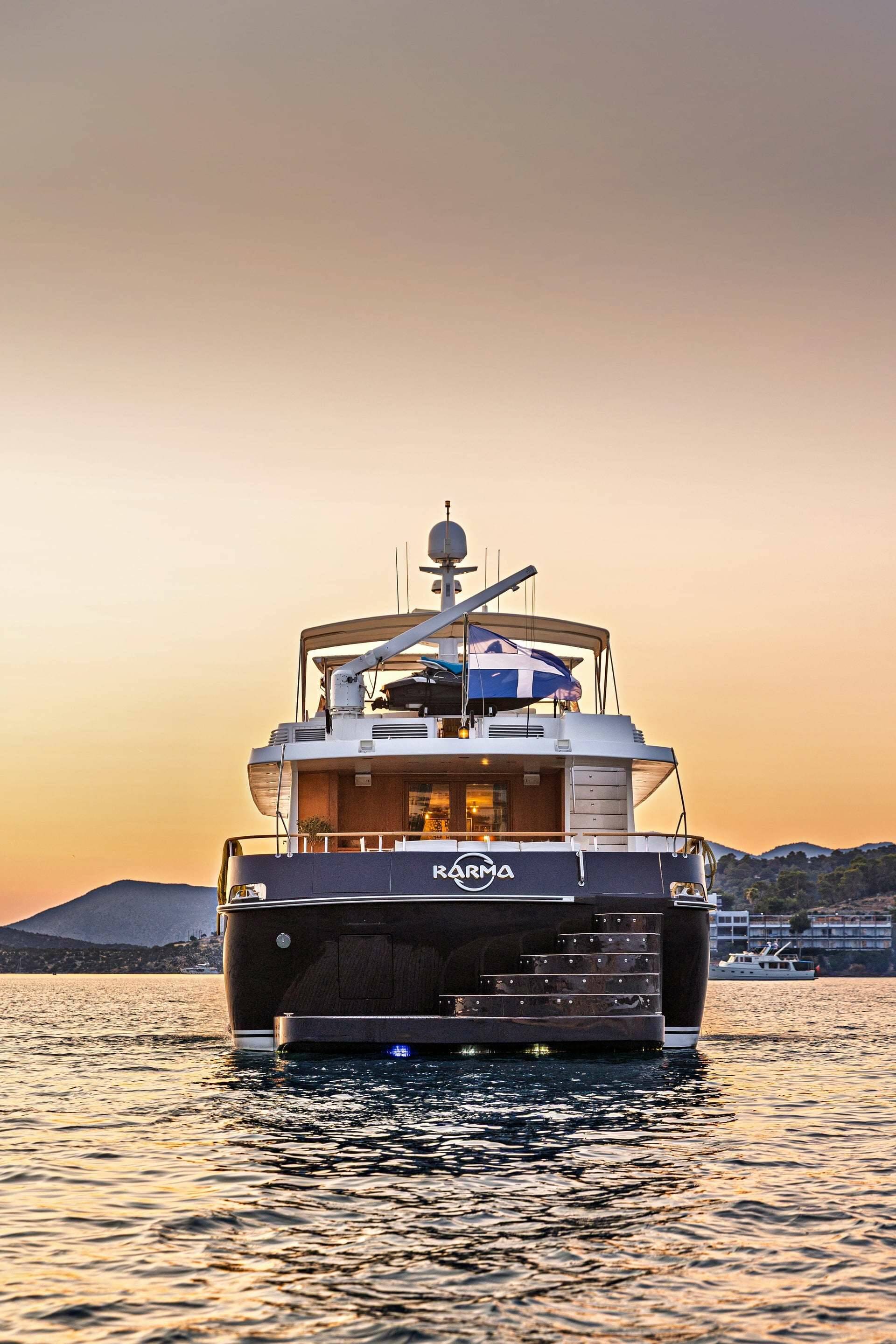 Luksusowy katamaran KARMA, zbudowany w 1987 stacjonuje w Greece. Posiada 5 kabin, może pomieścić 11 osób.