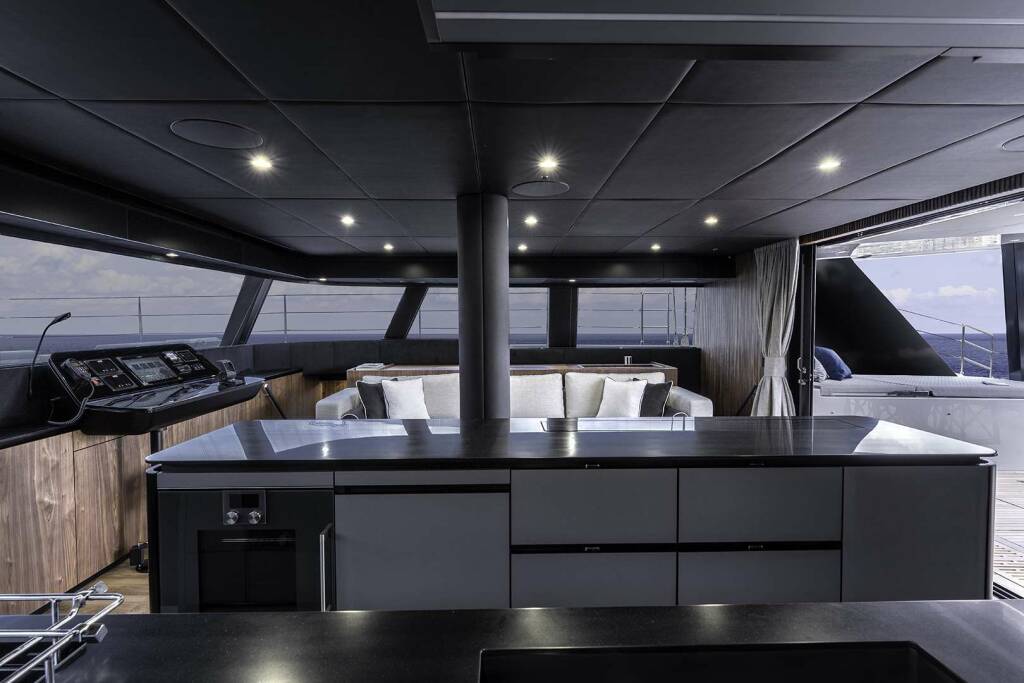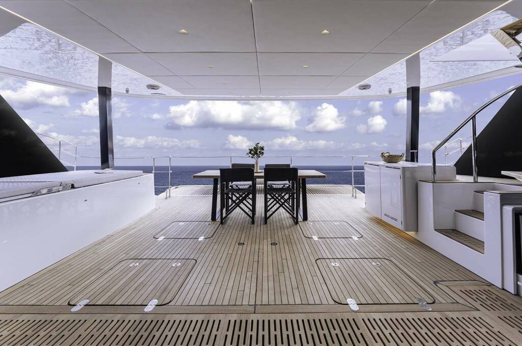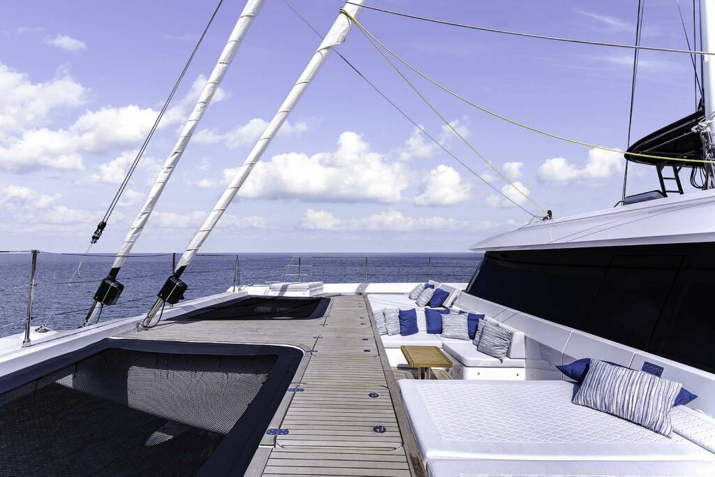 Luksusowy katamaran OYA, zbudowany w 2025 stacjonuje w W. Med -Naples/Sicily, W. Med -Riviera/Cors/Sard.. Posiada 4 kabin, może pomieścić 8 osób.