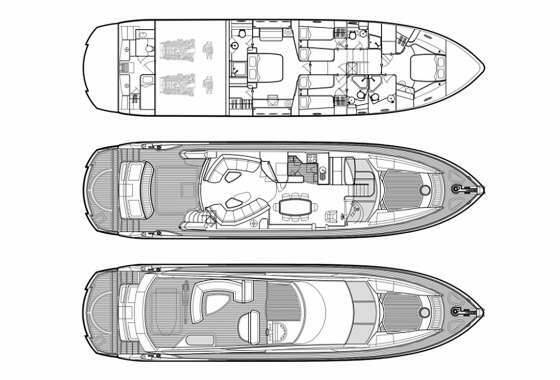 Other Entertainment: WIFI, Smart TVS in all cabins, Separate sound systems with Bose speakers, Showers all equipped with jets,A/C with 9 controlled zones ,Full size fridge and freezer, Barbeque ,Bathing platform, bow sunbathing area , Full shade option in Fly bridge, Underwater lights