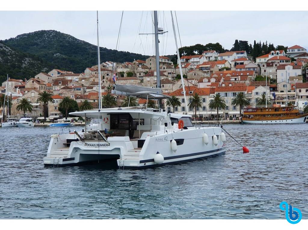 Astrea 42 OCEAN RUNNER (Katamarán), bola spustená na vodu v roku 2019 a kotví v Splitský región (Chorvátsko) v meste Trogir, Yachtclub Seget (Marina Baotić). Trup je vybavený 4 + 2 kajutami a 4 wc a je schválený na pohodlné ubytovanie 10 + 2 osôb.