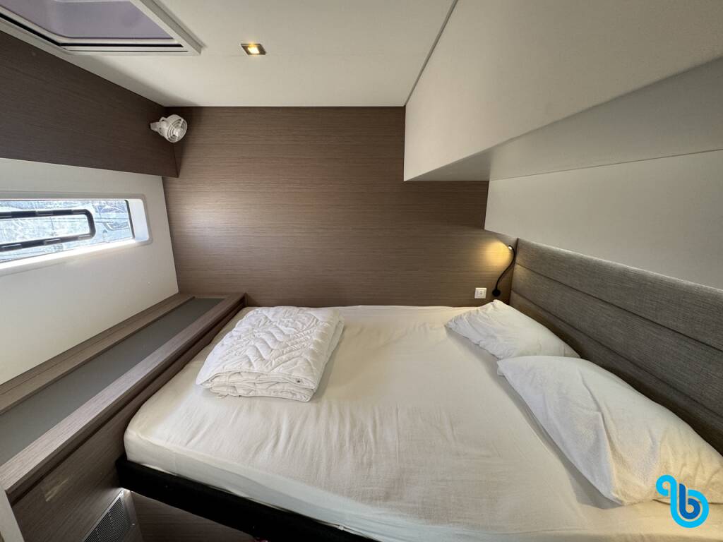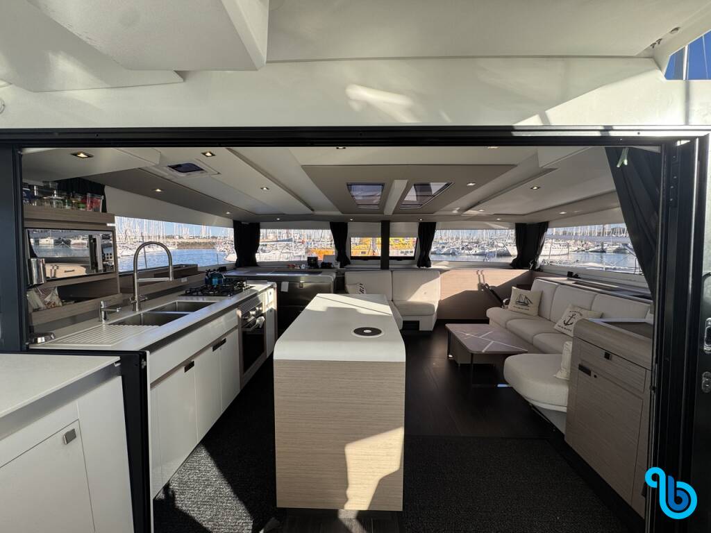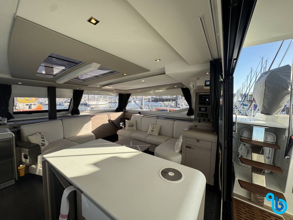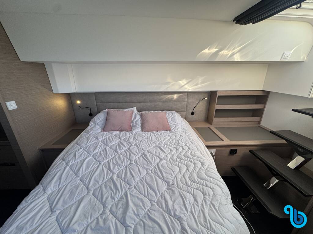 Podrobnosti o lodi Aura 51 Maeva (Katamarán), bola spustená na vodu v roku 2023 a kotví v Poitou-Charentes (Francúzsko) v meste French Atlantic, La Rochelle. Trup je vybavený 5 kajutami a 5 wc a je schválený na pohodlné ubytovanie 10 osôb. Prístav French Atlantic, La Rochelle, Francúzsko Typ Katamarán Lodenica Fountaine Pajot Model Aura 51 Rok 2023 Kajuty 5 Lôžka 10 Osoby 10 WC/Sprcha 5 Typ hlavnej plachty celospirová Typ kosatky/genoy rolovacia Typ kormidla Kormidlové koleso Palivová nádrž 900 l Nádrž na pitnú vodu 1050 l Dĺžka 15.54 m Šírka 8.08 m Ponor 1.30 m Motor 2 x 60 hp Boat ID 322857 Kaucia 0 € Kaucia 10.000 € ŠPECIFIKÁCIE NA PALUBE ZOBRAZIŤ- ZAVRIEŤ Prémiové vybavenie Elektrické navijaky/vinšne Práčka Watermaker – Odsolovač vody Bezpečnosť Záchranné pásy (bezpečnostné harnesy) Záchranné vesty Elektronika VHF rádio Watermaker – Odsolovač vody Zásuvka 220V Interiér Práčka Ventilátory Lodná kuchyňa Chladnička Drez Kávovar Kuchynské náčinie (kuchynské zariadenie, príbory) Mraznička Rúra Rúra Rýchlovarná kanvica Teplá voda Navigácia AIS Autopilot Echolot/Hĺbkomer GPS Navigačné (námorné) mapy a námorné príručky Navigačný set Rýchlomer (Speed log) Wind instrument/Anemometer Paluba Chladnička v kokpite Elektrický kotevný vrátok Grill/Barbecue/Plancha Kúpací rebrík Kúpacia platforma Lodný mostík / lávka Postele na opaľovanie Stolík v kokpite Tíkový kokpit Vankúše do kokpitu Vonkajšia sprcha na korme Plachty Elektrické navijaky/vinšne Lazy bag Zábava Bluetooth prehrávač Rádio mp3 prehrávač TV Vonkajšie reproduktory Vybavenie Flybridge Palubné vankúše Prívesný motor PRÍSTAV ODCHODU ZOBRAZIŤ- ZAVRIEŤ Prístav odchodu French Atlantic, La Rochelle, Francúzsko Povinné poplatky Inšpekcia potápačov Povinné - Na zaplatenie pri potvrdení za rezerváciu 85 € Inšpekcia potápačov Povinné - Na zaplatenie pri nalodení za rezerváciu 85 € Kapitán Povinné on request to C&G - to be paid for only at the base with the skipper company. - Na zaplatenie pri potvrdení za deň + strava 350 € Kapitán Povinné on request to C&G - to be paid for only at the base with the skipper company. - Na zaplatenie pri potvrdení za deň + strava 350 € Záverečné upratovanie Povinné - Na zaplatenie pri potvrdení za rezerváciu 250 € Záverečné upratovanie Povinné - Na zaplatenie pri nalodení za rezerváciu 250 € Voliteľné extra Kapitánský tréning ONLY On REQUEST to C&G - Na zaplatenie pri nalodení za deň 290 € Kapitánský tréning ONLY On REQUEST to C&G - Na zaplatenie pri nalodení za deň 290 € Nabíjanie paliva If the yacht is re-delivered without full tank of fuel, a fee of 100 € will be charged on top of fuel cost. - Na zaplatenie pri potvrdení za rezerváciu 100 € Nabíjanie paliva If the yacht is re-delivered without full tank of fuel, a fee of 100 € will be charged on top of fuel cost. - Na zaplatenie pri potvrdení za rezerváciu 100 € Prespanie na lodi Optional 1st overnight on board, for weekly charters (on request only, not available in July and August) - Na zaplatenie pri potvrdení za noc 180 € Prespanie na lodi Optional 1st overnight on board, for weekly charters (on request only, not available in July and August) - Na zaplatenie pri potvrdení za noc 180 € Posteľná bielizeň x 2 bath towels + house sheet and pillowcase) attention no sheet for non-convertible squares - Na zaplatenie pri potvrdení za osobu 20 € Posteľná bielizeň x 2 bath towels + house sheet and pillowcase) attention no sheet for non-convertible squares - Na zaplatenie pri potvrdení za osobu 25 € Stand up paddle (sup) Additional deposit 100 EUR - Na zaplatenie pri potvrdení za rezerváciu 315 € Stand up paddle (sup) Additional deposit 100 EUR - Na zaplatenie pri potvrdení za rezerváciu 315 € Stand up paddle (sup) Price per day / Additional deposit 100 EUR - Na zaplatenie pri potvrdení za noc 15 € ZOBRAZIŤ VŠETKY Otvoriť kalendár AURA 51 | MAEVA 20.12. - 27.12.2025 -2% 7.644 € 7.800 € 04.04. - 11.04.2026 -7% 8.711 € 9.357 € 11.04. - 18.04.2026 -7% 8.845 € 9.500 € 18.04. - 25.04.2026 -7% 8.845 € 9.500 € 25.04. - 02.05.2026 -7% 8.845 € 9.500 € 02.05. - 09.05.2026 -7% 8.845 € 9.500 € 09.05. - 16.05.2026 -7% 11.172 € 12.000 € 16.05. - 23.05.2026 -7% 11.172 € 12.000 € 23.05. - 30.05.2026 -7% 11.172 € 12.000 € 30.05. - 06.06.2026 -7% 11.172 € 12.000 € 06.06. - 13.06.2026 -7% 11.172 € 12.000 € 13.06. - 20.06.2026 -7% 11.172 € 12.000 € 20.06. - 27.06.2026 -7% 11.172 € 12.000 € 27.06. - 04.07.2026 -7% 11.172 € 12.000 € 04.07. - 11.07.2026 -7% 13.034 € 14.000 € 11.07. - 18.07.2026 -7% 13.034 € 14.000 € 18.07. - 25.07.2026 -7% 13.034 € 14.000 € 25.07. - 01.08.2026 -7% 13.034 € 14.000 € 01.08. - 08.08.2026 -7% 13.034 € 14.000 € 08.08. - 15.08.2026 -7% 13.034 € 14.000 € 15.08. - 22.08.2026 -7% 13.034 € 14.000 € 22.08. - 29.08.2026 -7% 13.034 € 14.000 € 29.08. - 05.09.2026 -7% 11.970 € 12.857 € 05.09. - 12.09.2026 -7% 9.177 € 9.857 € 12.09. - 19.09.2026 -7% 8.845 € 9.500 € 19.09. - 26.09.2026 -7% 8.845 € 9.500 € 26.09. - 03.10.2026 -7% 8.845 € 9.500 € 03.10. - 10.10.2026 -7% 8.845 € 9.500 € 10.10. - 17.10.2026 -7% 8.845 € 9.500 € 17.10. - 24.10.2026 -7% 8.845 € 9.500 € 24.10. - 31.10.2026 -7% 8.845 € 9.500 € 31.10. - 07.11.2026 -7% 7.914 € 8.500 € 07.11. - 14.11.2026 -7% 7.914 € 8.500 € 14.11. - 21.11.2026 -7% 7.914 € 8.500 € 21.11. - 28.11.2026 -7% 7.914 € 8.500 € 28.11. - 05.12.2026 -7% 7.914 € 8.500 € 05.12. - 12.12.2026 -7% 7.914 € 8.500 € 12.12. - 19.12.2026 -7% 7.914 € 8.500 € 19.12. - 26.12.2026 -7% 7.914 € 8.500 € Otázky a odpovede Aké licencie potrebujem na prenájom lode Aura 51 | Maeva? Vyžaduje sa lodný preukaz a osvedčenie na osobnú vysielačku VHF. Odporúčame vám, aby ste si u o
