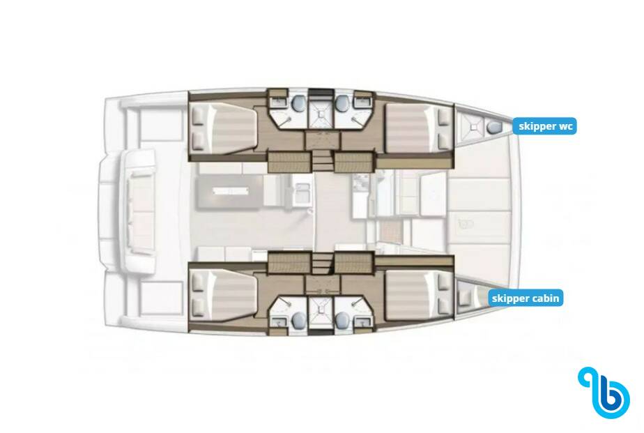Kapitán nie je zahrnutý v cene lode. Kapitána je možné pridať počas potvrdzovacieho postupu: cena sa zvyčajne pohybuje od 180 do 250 EUR na deň; kapitán potrebuje vyhradenú kajutu. Po overení u prevádzkovateľa BeBlue bude možné požiadať, aby kapitán spal v jedálenskom kúte (centrálny salónik).