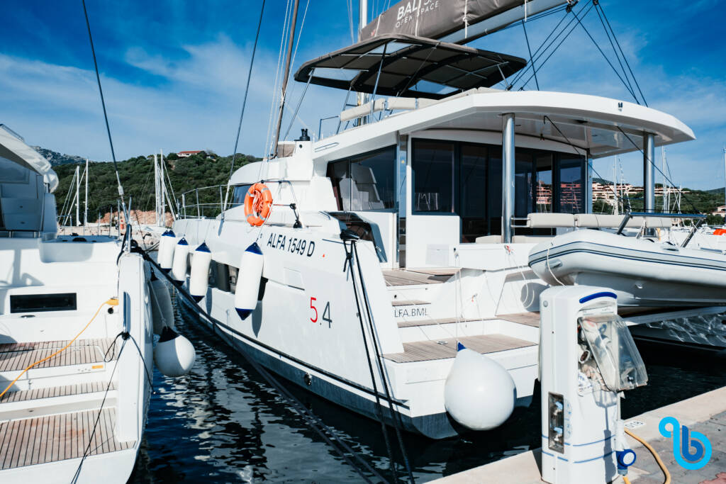 Bali 5.4 ALFA.BML (Katamarán), bola spustená na vodu v roku 2023 a kotví v Taliansko - Sicília, Eolie v meste Sicily, Portorosa. Trup je vybavený 5 + 2 kajutami a 7 wc a je schválený na pohodlné ubytovanie 10 + 2 osôb.