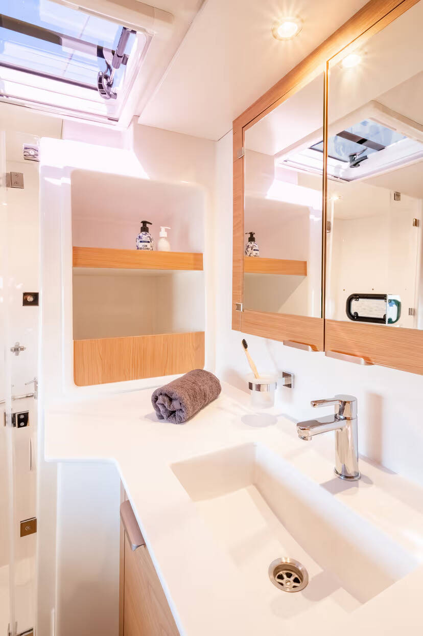 Vyžaduje sa lodný preukaz a osvedčenie na osobnú vysielačku VHF. Odporúčame vám, aby ste si u operátora BeBlue overili, či je váš preukaz akceptovaný pre toto plavidlo a túto krajinu.