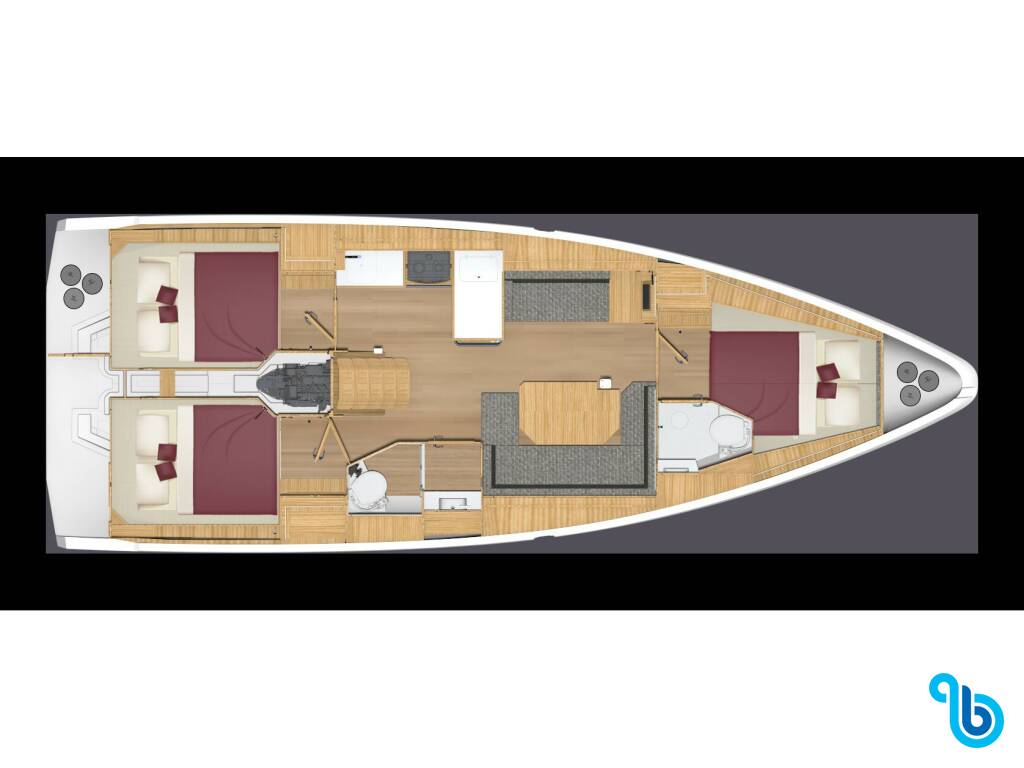 Kajuty 3 double cabins + convertible saloon