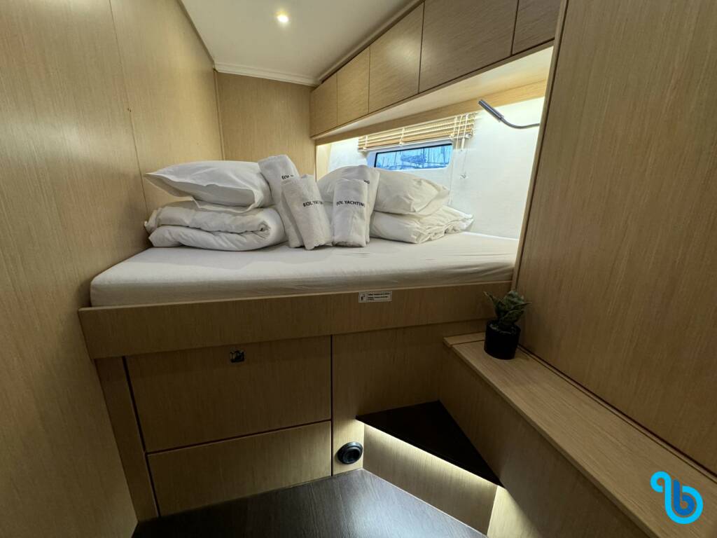 Vyžaduje sa lodný preukaz a osvedčenie na osobnú vysielačku VHF. Odporúčame vám, aby ste si u operátora BeBlue overili, či je váš preukaz akceptovaný pre toto plavidlo a túto krajinu.