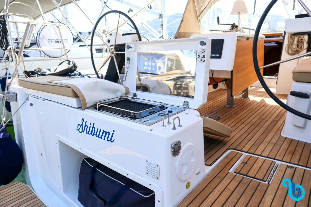 Dufour 390 Grand Large SHIBUMI (Plachetnica), bola spustená na vodu v roku 2022 a kotví v Kampánia (Taliansko) v meste Castellammare, Marina di Stabia. Trup je vybavený 3 kajutami a 3 wc a je schválený na pohodlné ubytovanie 6 + 1 osôb.