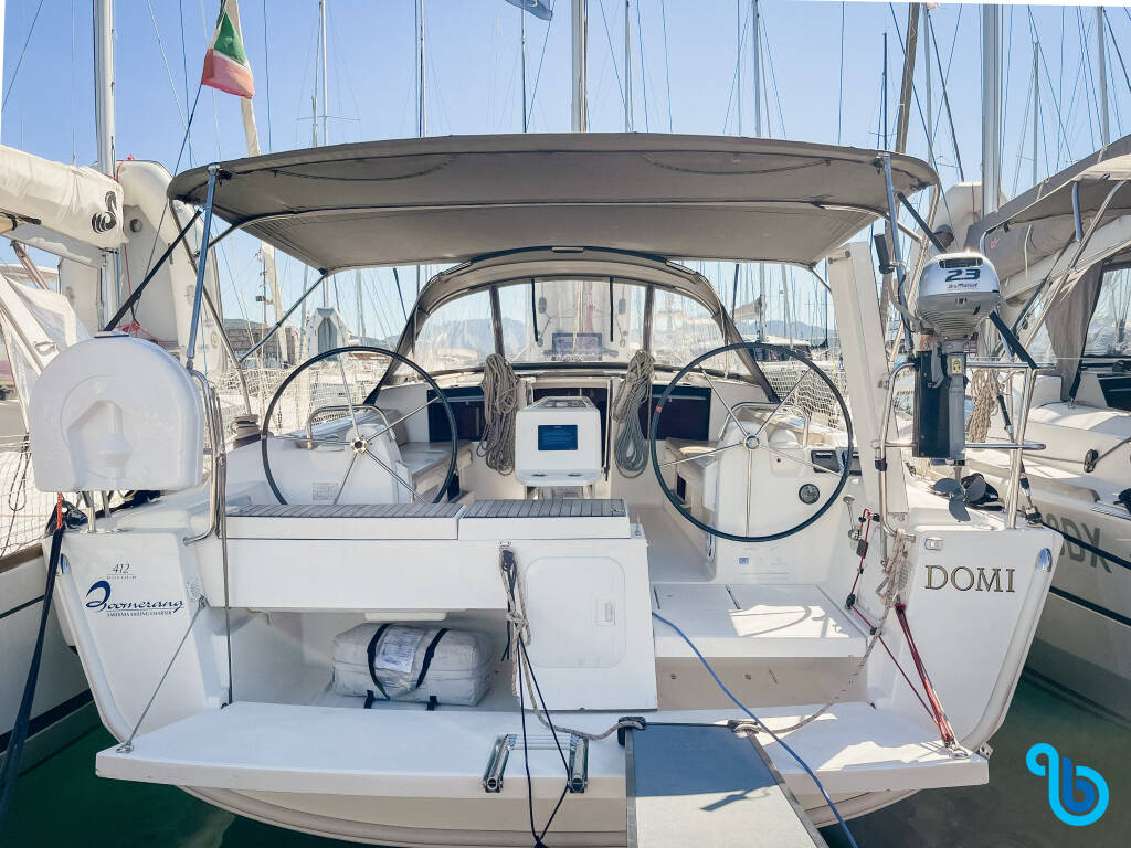 Dufour 412 Grand Large DOMI (Plachetnica), bola spustená na vodu v roku 2017 a kotví v Sardínia (Taliansko) v meste Portisco. Trup je vybavený 3 kajutami a 2 wc a je schválený na pohodlné ubytovanie 6 + 2 osôb.