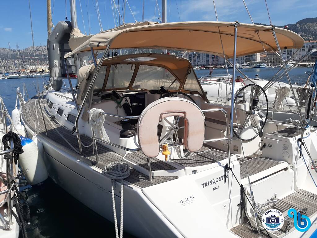 Dufour 425 Grand Large Trinquette (Plachetnica), bola spustená na vodu v roku 2012 a kotví v Provence-Alpes-Côte d'Azur v meste Toulon, Vieille Darse. Trup je vybavený 3 kajutami a 2 wc a je schválený na pohodlné ubytovanie 6 + 2 osôb.