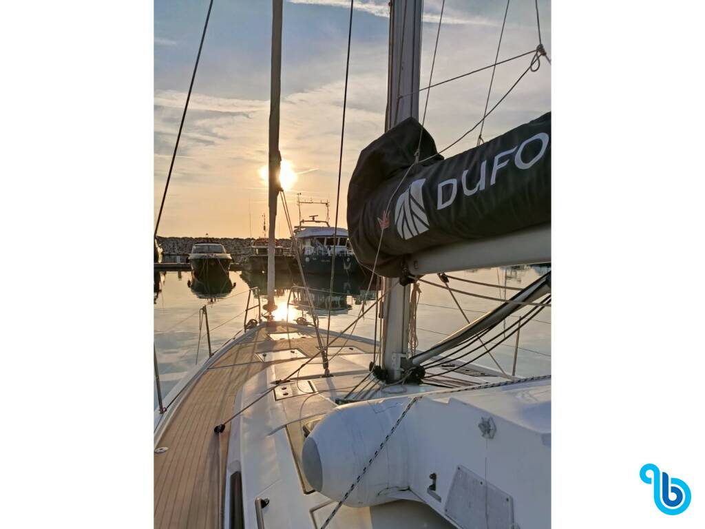 Dufour 470 SOFT TOUCH (Plachetnica), bola spustená na vodu v roku 2023 a kotví v Taliansko - Sicília, Eolie v meste Sicily, Portorosa. Trup je vybavený 4 + 1 kajutami a 5 wc a je schválený na pohodlné ubytovanie 8 + 1 osôb.