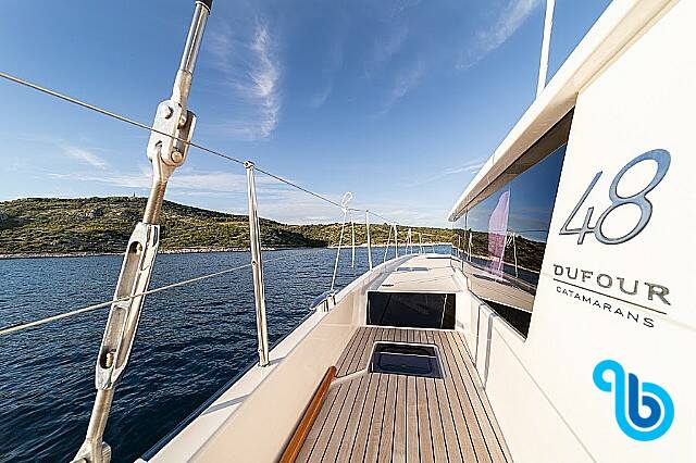 Dufour 48 Catamaran BRO (Katamarán), bola spustená na vodu v roku 2023 a kotví v Šibenický región (Chorvátsko) v meste Primošten - Marina Kremik. Trup je vybavený 6 kajutami a 6 wc a je schválený na pohodlné ubytovanie 12 osôb.