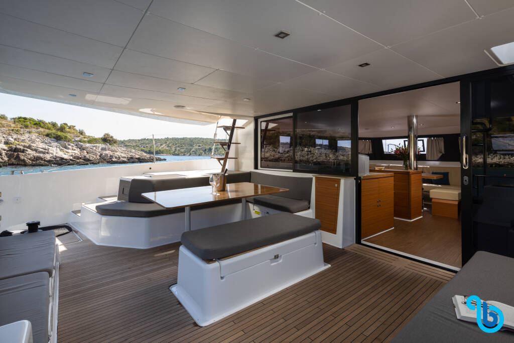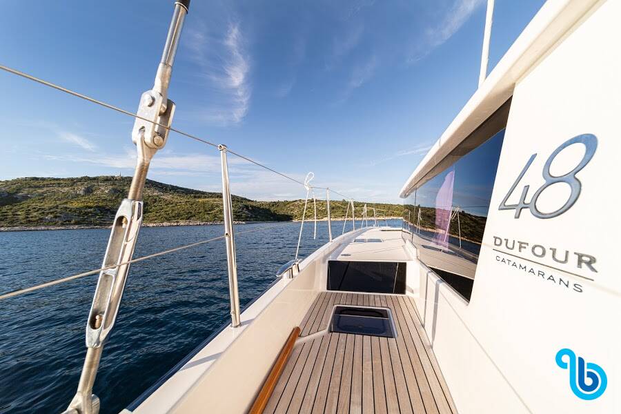 Dufour 48 Catamaran PAX (Katamarán), bola spustená na vodu v roku 2022 a kotví v Šibenický región (Chorvátsko) v meste Primošten - Marina Kremik. Trup je vybavený 6 kajutami a 6 wc a je schválený na pohodlné ubytovanie 12 osôb.