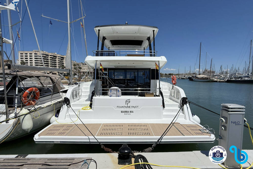 Fountaine Pajot MY6 Mamma Mia (Katamarán), bola spustená na vodu v roku 2025 a kotví v Španielsko - Baleárske ostrovy v meste Palma de Mallorca, Marina Naviera Balear. Trup je vybavený 3 + 1 kajutami a 3 wc a je schválený na pohodlné ubytovanie 6 + 1 osôb.