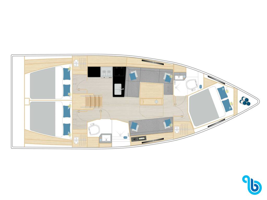 Vyžaduje sa lodný preukaz a osvedčenie na osobnú vysielačku VHF. Odporúčame vám, aby ste si u operátora BeBlue overili, či je váš preukaz akceptovaný pre toto plavidlo a túto krajinu.