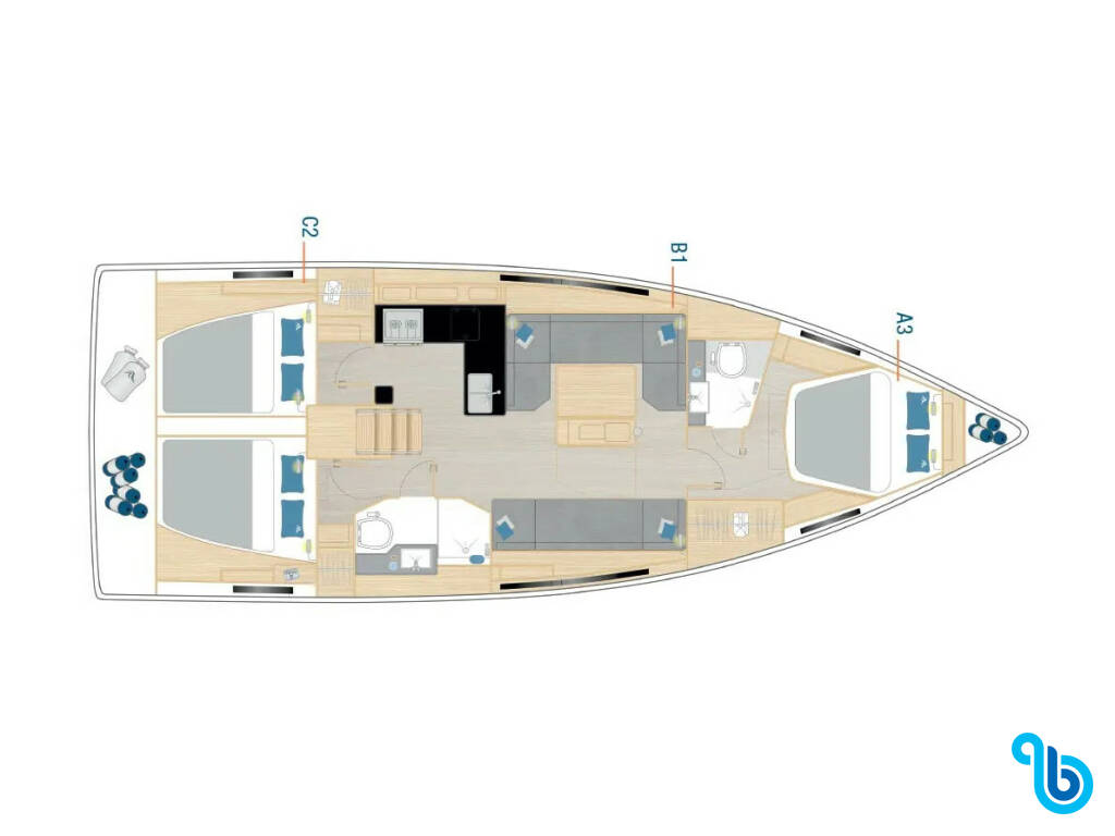 Vyžaduje sa lodný preukaz a osvedčenie na osobnú vysielačku VHF. Odporúčame vám, aby ste si u operátora BeBlue overili, či je váš preukaz akceptovaný pre toto plavidlo a túto krajinu.