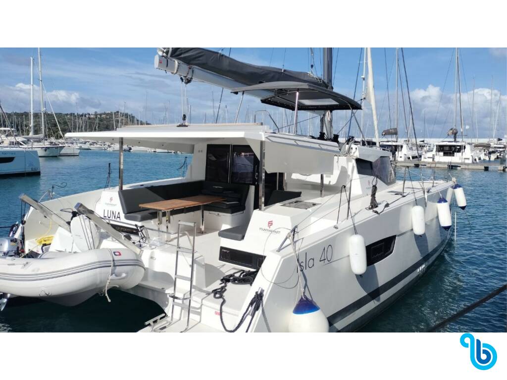Podrobnosti o lodi Isla 40 LUNA (Katamarán), bola spustená na vodu v roku 2023 a kotví v Taliansko - Južná Sardínia v meste Cagliari. Trup je vybavený 4 + 1 kajutami a 5 wc a je schválený na pohodlné ubytovanie 8 + 1 + 1 osôb. Prístav Cagliari, Taliansko Typ Katamarán Lodenica Jeanneau Model Isla 40 Rok 2023 Kajuty 4 + 1 crew + dinete Lôžka 10 Osoby 10 WC/Sprcha 5 Palivová nádrž 300 l Nádrž na pitnú vodu 530 l Dĺžka 11.73 m Šírka 6.63 m Ponor 1.20 m Motor 2x20 hp Boat ID 339223 Kaucia 0 € Kaucia 800 € ŠPECIFIKÁCIE NA PALUBE ZOBRAZIŤ- ZAVRIEŤ Prémiové vybavenie Heater Autopilot Autopilot GPS chartplotter Bimini Flybridge Lazy Bag Kávovar Refrigerator Kokpitové reproduktory External speakers Malý čln (pomocný) Dinghy Transformátor / menič prúdu Inverter Vybavenie BBQ Cockpit shower Cooker and oven Hot water system Internal speakers Kitchen utensils Safety equipment Stove Water purifier Winch Wind/speed/depth instruments PRÍSTAV ODCHODU ZOBRAZIŤ- ZAVRIEŤ Prístav odchodu Cagliari, Taliansko Povinné poplatky Sail easy pack Povinné - Na zaplatenie pri potvrdení za rezerváciu 750 € Voliteľné extra Early check-in (3 pm) za rezerváciu 300 € Extra bed linen x za osobu 20 € Extra towels x za osobu 15 € Hammock za týždeň 40 € Hostess za týždeň 1.400 € Safety net za týždeň 200 € Skipper za týždeň 1.600 € Snorkeling set x za osobu 25 € Sup (stand up paddle) za týždeň 150 € Wifi (50 gb) za týždeň 50 € ZOBRAZIŤ VŠETKY Otvoriť kalendár ISLA 40 | LUNA 07.03. - 14.03.2026 -28% 3.616 € 5.000 € 14.03. - 21.03.2026 -28% 3.616 € 5.000 € 21.03. - 28.03.2026 -28% 3.616 € 5.000 € 28.03. - 04.04.2026 -28% 3.616 € 5.000 € 04.04. - 11.04.2026 -28% 3.616 € 5.000 € 11.04. - 18.04.2026 -28% 3.616 € 5.000 € 18.04. - 25.04.2026 -28% 3.616 € 5.000 € 25.04. - 02.05.2026 -25% 3.730 € 5.000 € 02.05. - 09.05.2026 -25% 3.749 € 5.000 € 09.05. - 16.05.2026 -25% 3.749 € 5.000 € 16.05. - 23.05.2026 -25% 4.648 € 6.200 € 23.05. - 30.05.2026 -23% 4.766 € 6.200 € 30.05. - 06.06.2026 -19% 5.031 € 6.200 € 06.06. - 13.06.2026 V opcii 13.06. - 20.06.2026 -19% 5.031 € 6.200 € 20.06. - 27.06.2026 -19% 6.126 € 7.550 € 27.06. - 04.07.2026 V opcii 04.07. - 11.07.2026 -16% 6.326 € 7.550 € 11.07. - 18.07.2026 -16% 6.326 € 7.550 € 18.07. - 25.07.2026 -16% 6.326 € 7.550 € 25.07. - 01.08.2026 -16% 6.326 € 7.550 € 01.08. - 08.08.2026 -16% 7.541 € 9.000 € 08.08. - 15.08.2026 -12% 7.938 € 9.000 € 15.08. - 22.08.2026 -12% 7.938 € 9.000 € 22.08. - 29.08.2026 -16% 5.195 € 6.200 € 29.08. - 05.09.2026 -16% 5.195 € 6.200 € 05.09. - 12.09.2026 -16% 5.195 € 6.200 € 12.09. - 19.09.2026 -16% 5.234 € 6.200 € 19.09. - 26.09.2026 -18% 4.107 € 5.000 € 26.09. - 03.10.2026 -23% 3.843 € 5.000 € 03.10. - 10.10.2026 -28% 3.616 € 5.000 € 10.10. - 17.10.2026 -28% 3.616 € 5.000 € 17.10. - 24.10.2026 -28% 3.616 € 5.000 € 24.10. - 31.10.2026 -28% 3.616 € 5.000 € 31.10. - 07.11.2026 -28% 3.616 € 5.000 € 07.11. - 14.11.2026 -28% 3.616 € 5.000 € 14.11. - 21.11.2026 -28% 3.616 € 5.000 € 21.11. - 28.11.2026 -28% 3.616 € 5.000 € 28.11. - 05.12.2026 -28% 3.616 € 5.000 € 05.12. - 12.12.2026 -28% 3.616 € 5.000 € 12.12. - 19.12.2026 -28% 3.616 € 5.000 € 19.12. - 26.12.2026 -28% 3.616 € 5.000 € Otázky a odpovede Aké licencie potrebujem na prenájom lode Isla 40 | LUNA? Vyžaduje sa lodný preukaz a osvedčenie na osobnú vysielačku VHF. Odporúčame vám, aby ste si u operátora BeBlue overili, či je váš preukaz akceptovaný pre toto plavidlo a túto krajinu. Zahŕňa cena kapitána? Kapitán nie je zahrnutý v cene lode. Kapitána je možné pridať počas potvrdzovacieho postupu: cena sa zvyčajne pohybuje od 180 do 250 EUR na deň; kapitán potrebuje vyhradenú kajutu. Po overení u prevádzkovateľa BeBlue bude možné požiadať, aby kapitán spal v jedálenskom kúte (centrálny salónik). Čo je Charter Pack? Ide o povinný paušálny príplatok, ktorý zvyčajne zahŕňa záverečné upratovanie a ďalšie služby poskytované základňou. Aké sú dodatočné náklady? Dodatočné náklady pozostávajú z povinných a voliteľných príplatkov. Počas plavby vzniknú aj vreckové výdavky a spotreba. (napr. odhadované náklady na stravu v galérii 20 € na osobu a deň, nafta na týždeň 150-300 €, prístavy a bóje, prírodné parky atď.) Aké dokumenty dostanem od spoločnosti BeBlue po rezervácii? Rezervácia sa potvrdí online zadaním údajov o nájomcovi a následne sa vystaví skutočná zmluva. Palubný lístok s pokynmi a údajmi pred nástupom do lietadla dostanete 7 dní pred odchodom. Ako funguje rezervácia a zrušenie rezervácie? Na potvrdenie rezervácie lode Isla 40 | LUNA je potrebné uhradiť 50 % ceny lode a 35 dní pred odchodom je potrebné uhradiť zostatok. Všetky voliteľné a povinné príplatky sa musia zaplatiť na mieste (ak nie je požadované inak). Zaplatená suma sa nevracia, ale odporúčame uzavrieť špeciálne poistenie pre prípad zrušenia plavby. https://www.bebluesailing.com/sk/cestovatelske-sluzby/poistenie-urcene-na-prenajom Je loď Isla 40 | LUNA poistená? Všetky lode sú kryté poistením Kasko na ochranu pred prípadným poškodením. K dispozícii je dodatočné poistenie na zvýšenie limitu zodpovednosti kapitána, ochranu kaucie a/alebo zrušenie výletu: https://www.bebluesailing.com/sk/cestovatelske-sluzby/poistenie-urcene-na-prenajom Aká je výška kaucie? Zábezpeka za akékoľvek škody spôsobené na tomto plavidle je 800,00 €. Riziko môžete znížiť poistením zálohy prostredníctvom odkazu:https://www.bebluesailing.com/sk/cestovatelske-sluzby/poistenie-urcene-na-prenajom Poznámka: uvedené informácie sú informatívneho charakteru a budú znovu potvrdené pri rezervácii operátorom BeBlue.