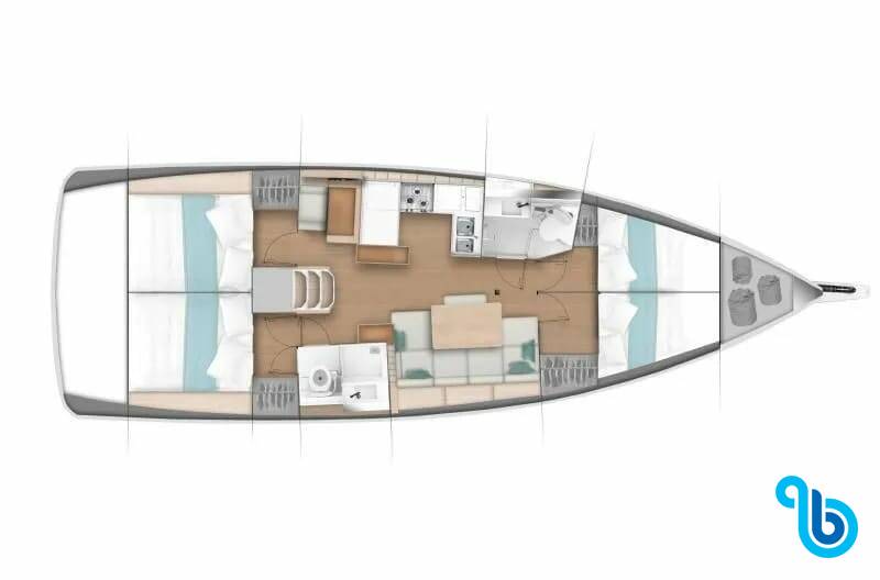 Jeanneau Bonbon (2022) (Plachetnica), bola spustená na vodu v roku 2022 a kotví v Turecko - Bodrum / Marmaris v meste Bodrum/Turgutreis/D-Marin. Trup je vybavený 4 kajutami a 2 wc a je schválený na pohodlné ubytovanie 8 osôb.