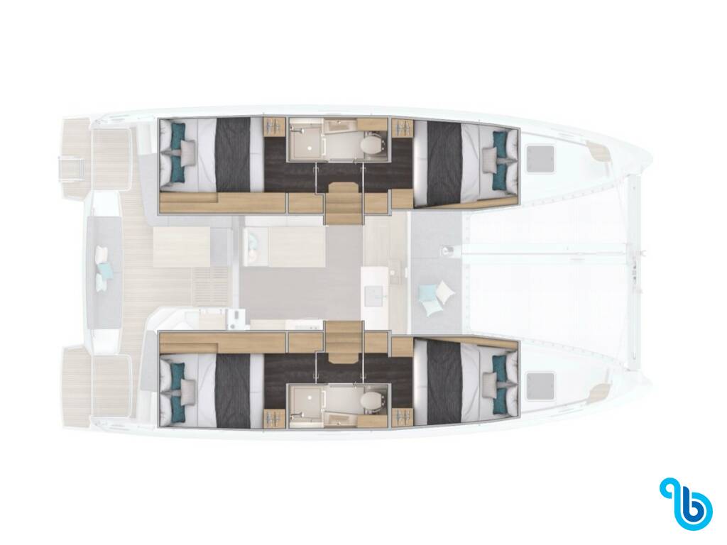Lagoon 38 new lag 38_2 (Katamarán), bola spustená na vodu v roku 2026 a kotví v Sardínia (Taliansko) v meste Cala dei Sardi. Trup je vybavený 4 kajutami a 2 wc a je schválený na pohodlné ubytovanie 10 osôb.