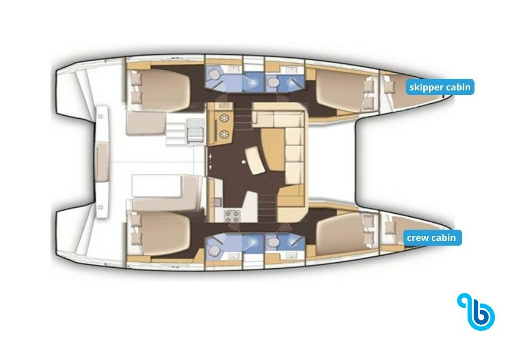Kapitán nie je zahrnutý v cene lode. Kapitána je možné pridať počas potvrdzovacieho postupu: cena sa zvyčajne pohybuje od 180 do 250 EUR na deň; kapitán potrebuje vyhradenú kajutu. Po overení u prevádzkovateľa BeBlue bude možné požiadať, aby kapitán spal v jedálenskom kúte (centrálny salónik).
