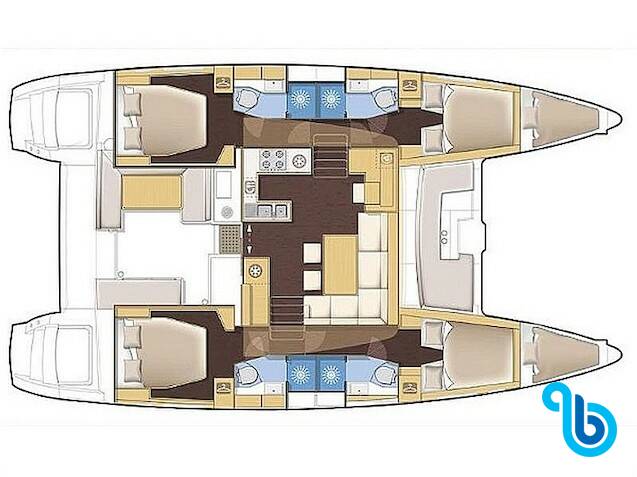Lagoon 450 Flybridge L450F-15A (Katamarán), bola spustená na vodu v roku 2015 a kotví v Grécko - Atény v meste Athens, Alimos marina. Trup je vybavený 4 kajutami a 4 wc a je schválený na pohodlné ubytovanie 10 osôb.