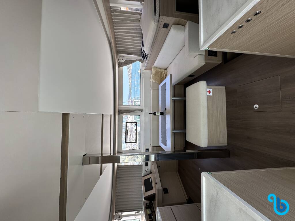 Vyžaduje sa lodný preukaz a osvedčenie na osobnú vysielačku VHF. Odporúčame vám, aby ste si u operátora BeBlue overili, či je váš preukaz akceptovaný pre toto plavidlo a túto krajinu.
