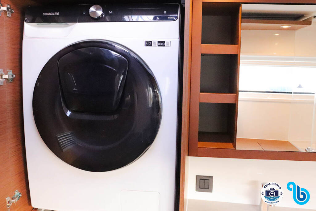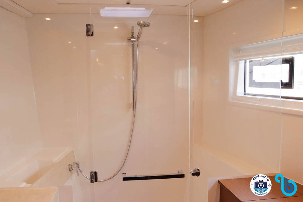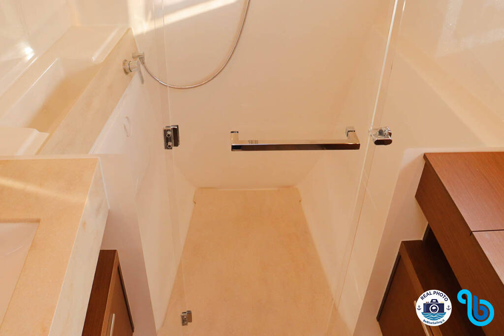 "Catamarano in ordine e ben mantenuta. Randa un po' usurata specialmente sulla penna, ma in generale vele ok. Bagni elettrici con svuotamento acque nere con pompa. Strumentazione ok, batterie buone ma con tre frigoriferi e un freezer richiede almeno 4-5 ore di motore. Generatore ok anche se carica lentamente, meglio usare motore. Dissalatore funzionante con buona portata. Ottimo il servizio assistenza della base."