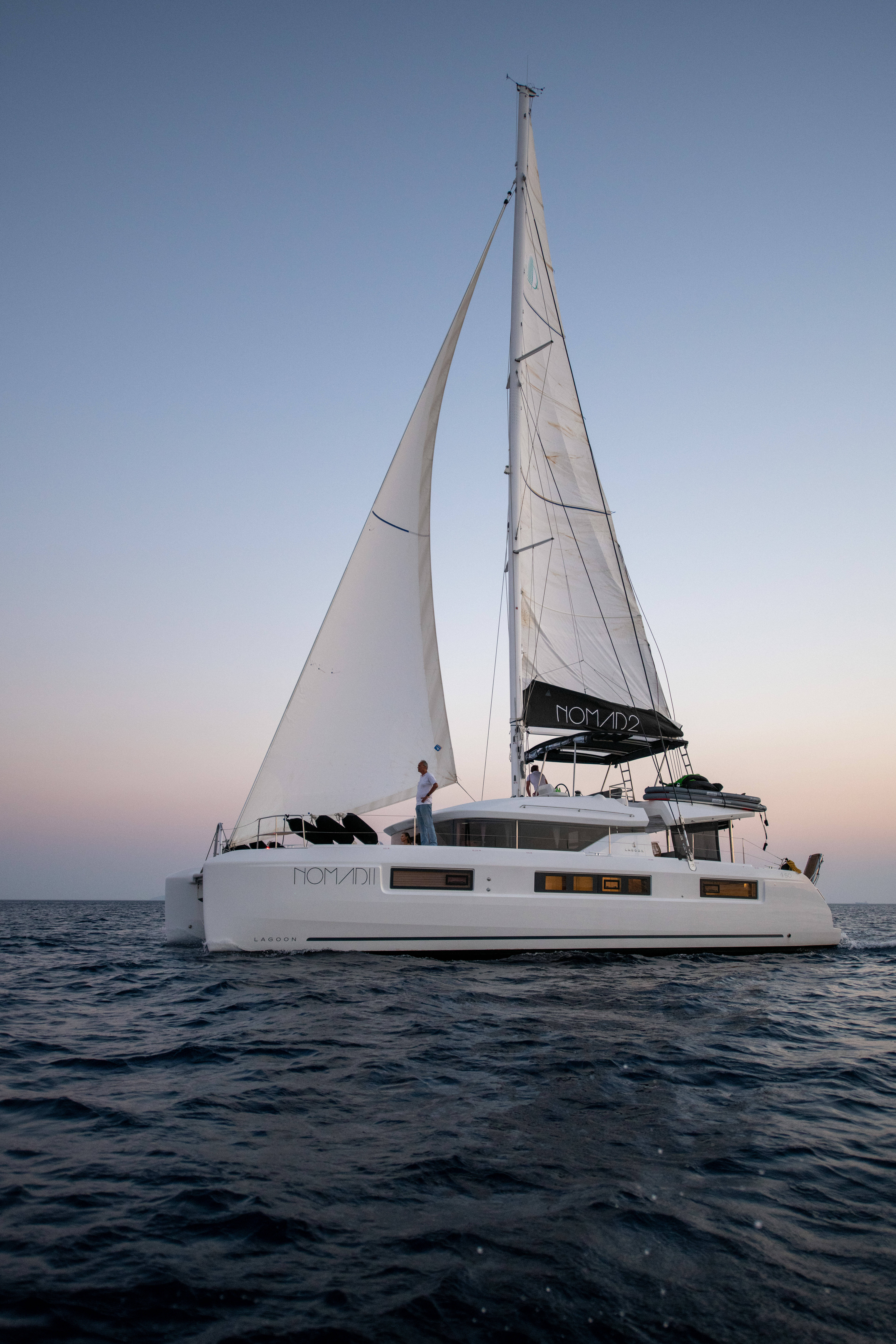 Lagoon 50 NOMAD II (Katamarán), bola spustená na vodu v roku 2020 a kotví v Iónské ostrovy (Grécko) v meste Lefkas, Marina Lefkas. Trup je vybavený 8 kajutami a 6 wc a je schválený na pohodlné ubytovanie 12 osôb.